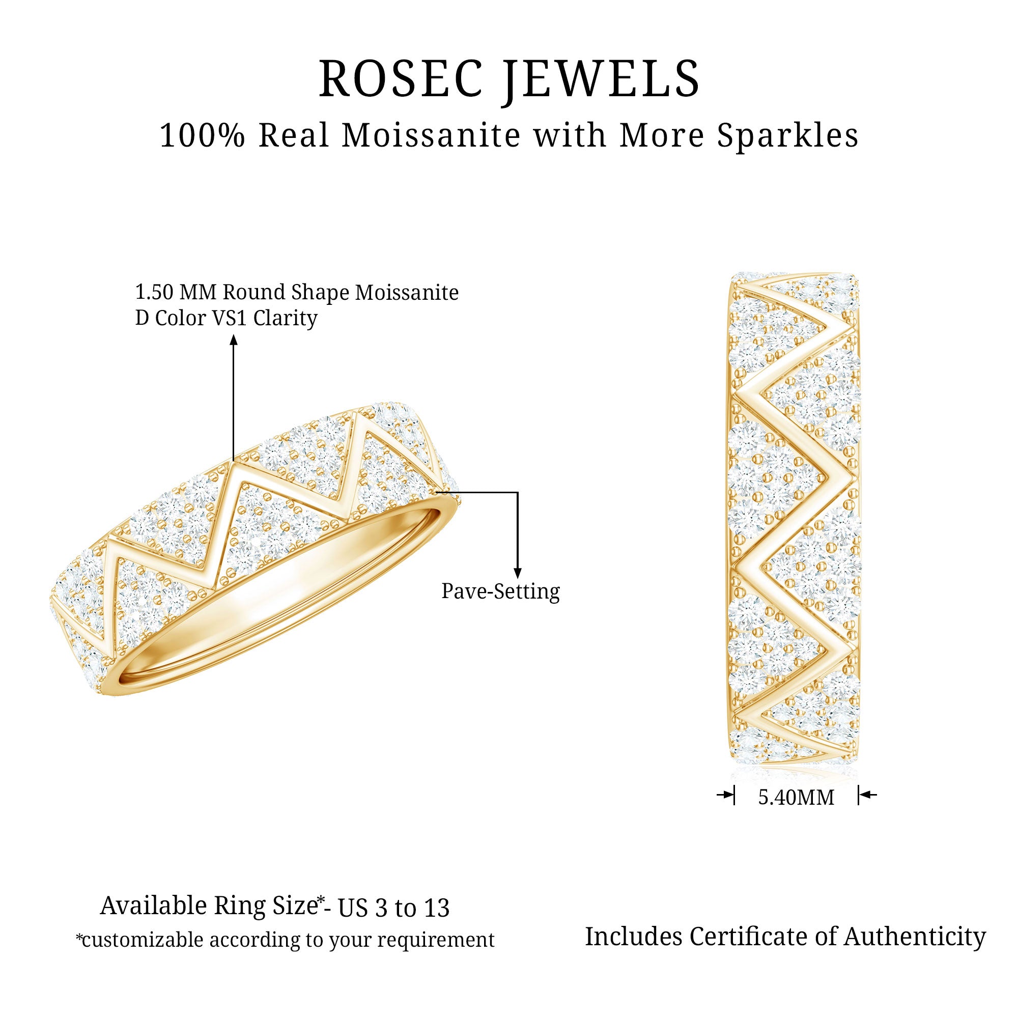 Certified Moissanite Wide Eternity Band Ring