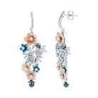 Certified Multi Gemstone Flower Dangle Earrings in Silver