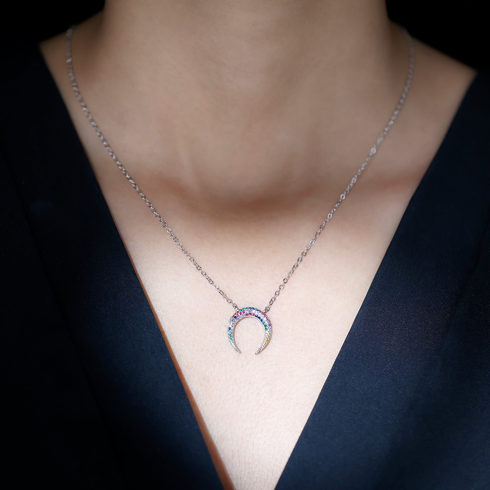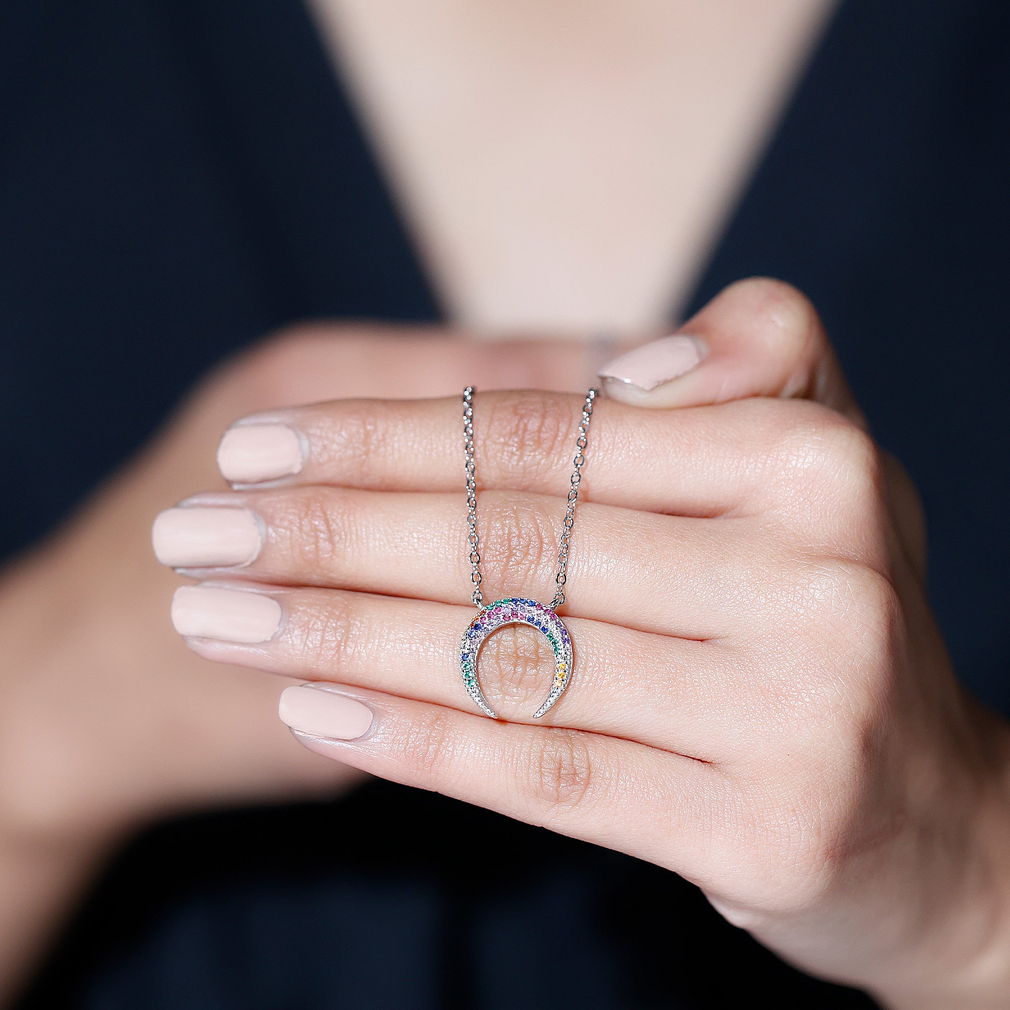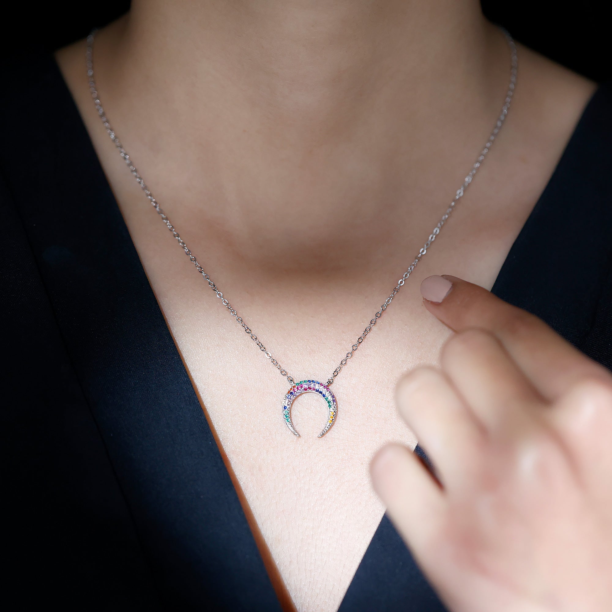 Fill your everyday style with color, charm and a hint of good fortune with this Horseshoe Necklace fashioned in gleaming 925 Sterling Silver. Designed to stand out, this Fine Necklace is adorned with Lab Blue Sapphire, Lab Ruby, Lab Pink Sapphire, Lab Orange Sapphire, Lab Yellow Sapphire and Lab Green Sapphire gemstones, bringing together vibrant tones that feel joyful and modern. Each stone adds its own pop of brightness. The silver frame and secure Lobster Clasp Closure make this Multi Gemstone Necklace comfortable and perfect for daily wear. Beautifully presented in a stylish jewelry box, this Rainbow Necklace also makes a thoughtful and meaningful gift. Ideal for birthdays, anniversaries, holidays or surprising someone who loves colorful, positive jewelry, it strikes the perfect balance between playful and elegant. The horseshoe design, often associated with luck and protection, adds an extra layer of sentiment, making it a piece that feels personal and special. With its rainbow sparkle and timeless silver finish, this necklace is ready to brighten any moment and become a cheerful favorite in any jewelry collection.