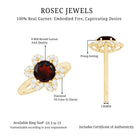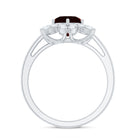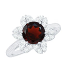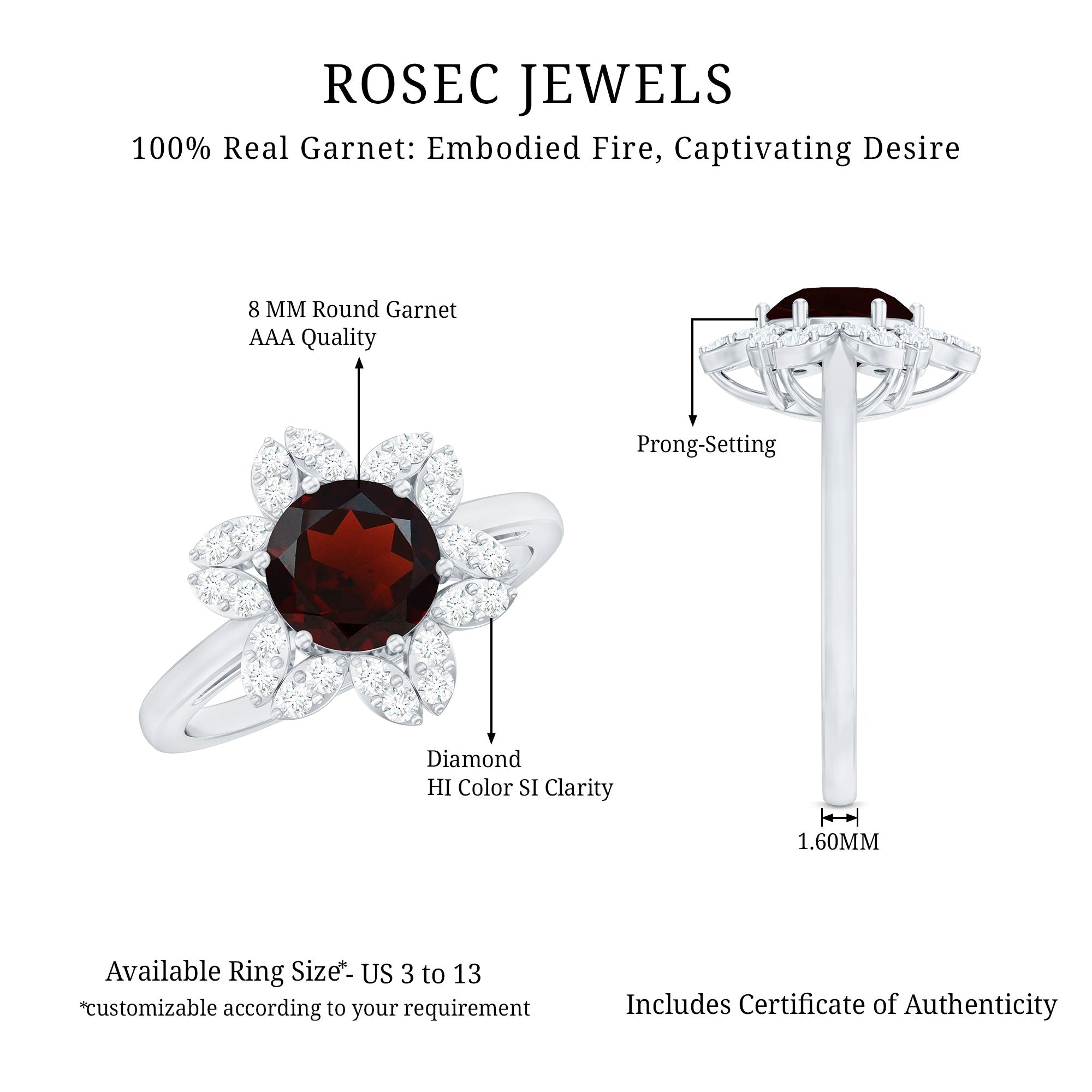 Certified Natural 8mm Garnet Flower Engagement Ring with Diamond