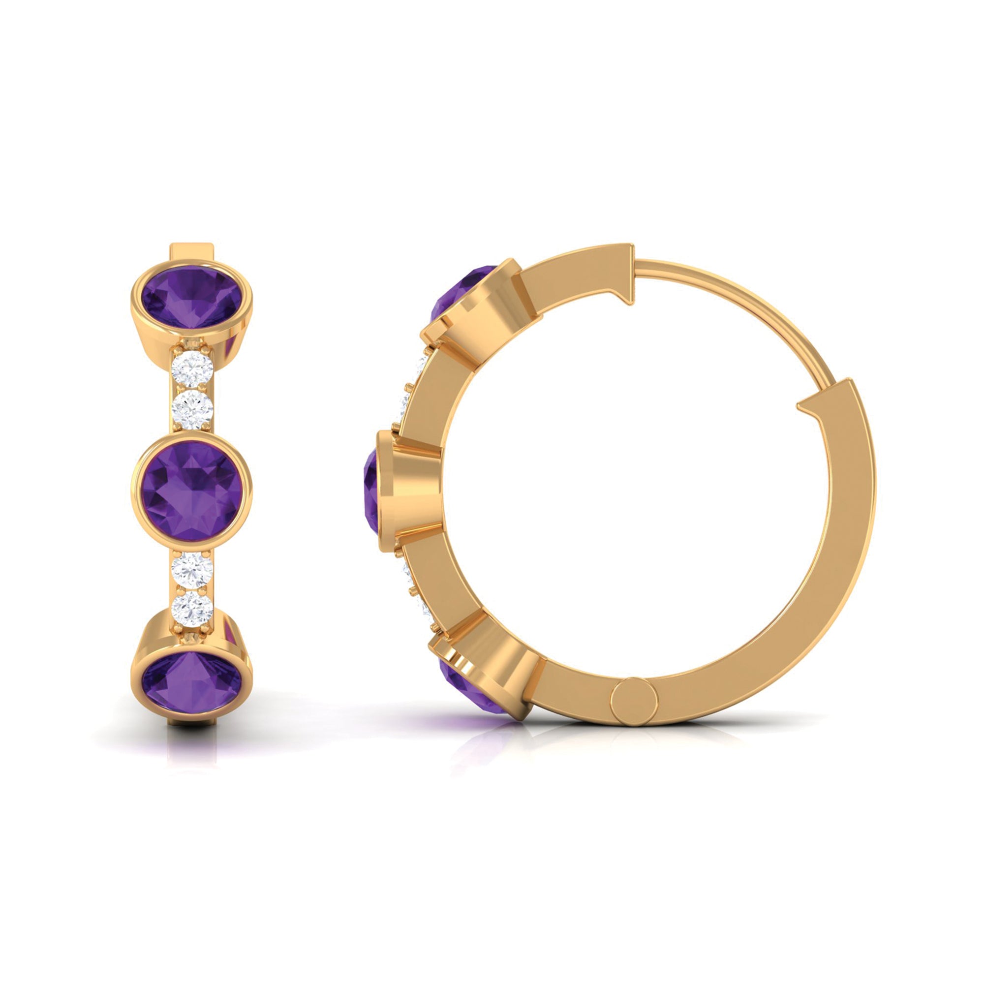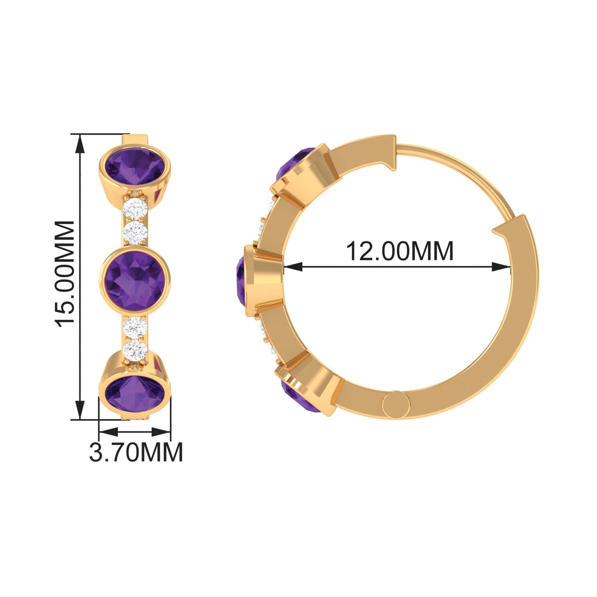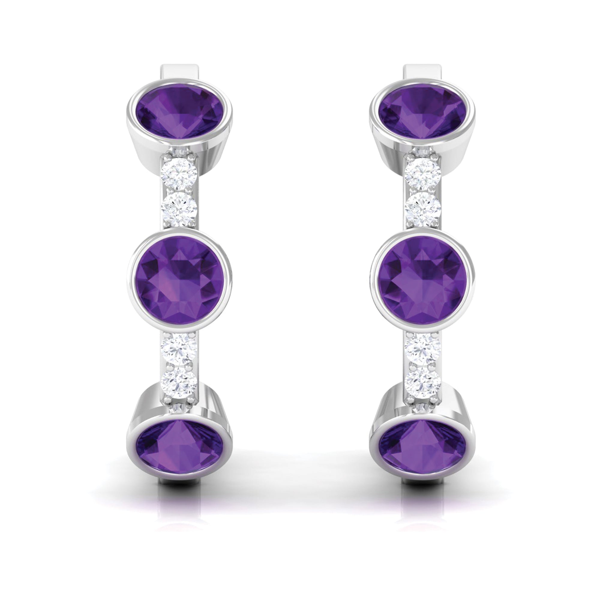 Add a touch of regal elegance to any look with these Amethyst Hoop Earrings, a stunning fusion of vibrant color and sparkling sophistication. Designed in an alternating pattern, each Bezel Set Round Amethyst radiates a rich purple glow, while the dainty Diamond stones catch the light with every movement, adding a delicate shimmer that elevates the entire design. The hoops offer a modern yet timeless design, ideal for both everyday elegance and special occasions. Expertly crafted, these Amethyst Diamond Earrings are as comfortable as they are captivating. Delivered in a signature jewelry box, these Bezel Set Earrings are ready to gift or to treat yourself to a versatile piece that can effortlessly pair with other jewelry or stand out on its own. Whether attending an evening gala, a brunch with friends or simply adding sparkle to your daily ensemble, these Amethyst Earrings for Women transform any moment into a celebration of beauty.