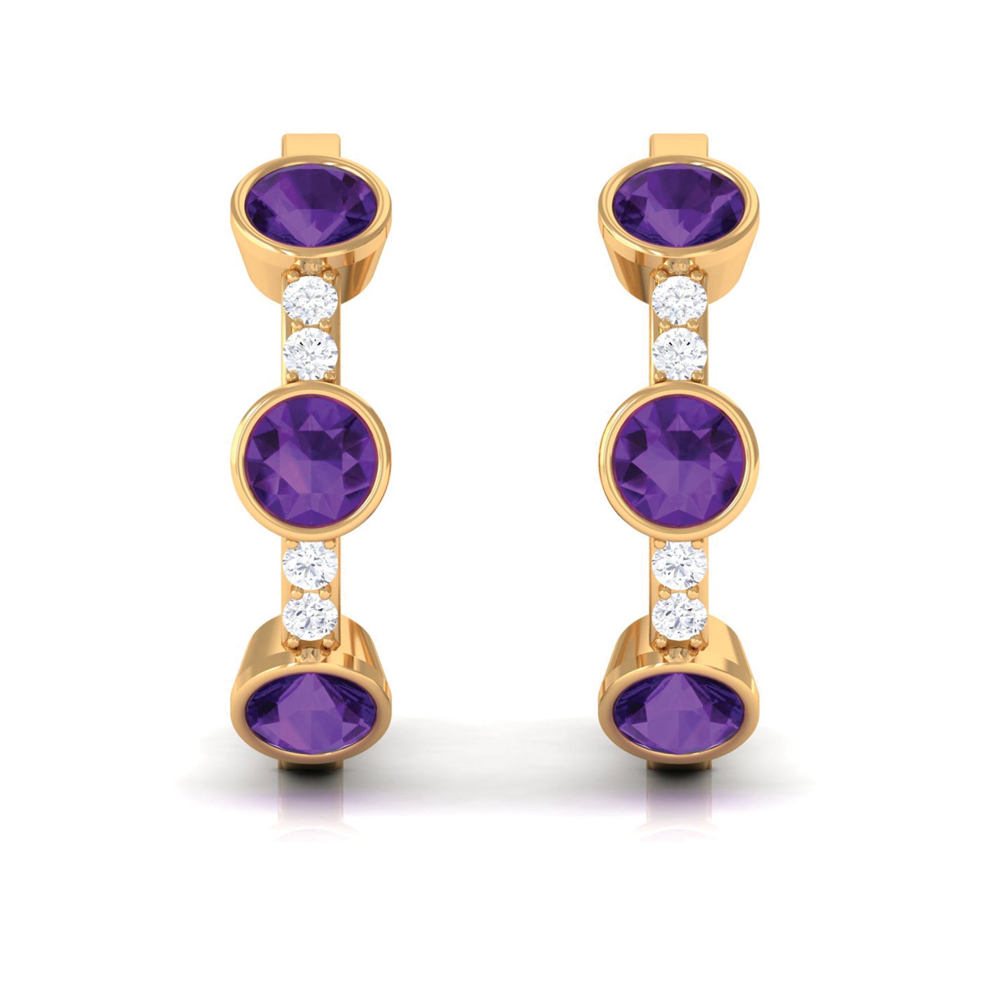 Add a touch of regal elegance to any look with these Amethyst Hoop Earrings, a stunning fusion of vibrant color and sparkling sophistication. Designed in an alternating pattern, each Bezel Set Round Amethyst radiates a rich purple glow, while the dainty Diamond stones catch the light with every movement, adding a delicate shimmer that elevates the entire design. The hoops offer a modern yet timeless design, ideal for both everyday elegance and special occasions. Expertly crafted, these Amethyst Diamond Earrings are as comfortable as they are captivating. Delivered in a signature jewelry box, these Bezel Set Earrings are ready to gift or to treat yourself to a versatile piece that can effortlessly pair with other jewelry or stand out on its own. Whether attending an evening gala, a brunch with friends or simply adding sparkle to your daily ensemble, these Amethyst Earrings for Women transform any moment into a celebration of beauty.