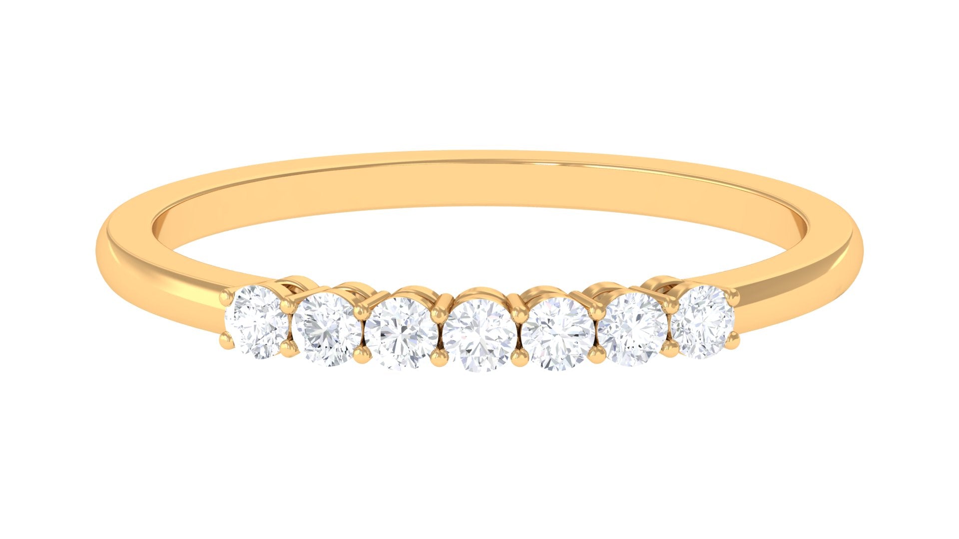 Express your style and versatility with this stunning Diamond Stackable Ring that lets you discover timeless elegance. The Round brilliant cut Diamond 7 stones is held securely in Shared Prong Setting. Create a captivating sparkle as a symbol of timeless love and elegance that ensures enduring beauty with impeccable taste and enduring grace. The gorgeous and timeless Diamond Stackable Wedding Ring can be stacked with your engagement ring, a wedding band or stacked with other bands as well. It can be well greeted as an anniversary ring or as an April Birthstone Ring.