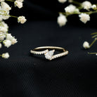 Representing the union of two hearts choosing each other, this Diamond Promise Ring is a beautiful symbol of love in motion. At the center sits a tilted 3X5 mm Pear Shape Diamond set in Prong Setting, chosen for its graceful shape and gentle sparkle. Its unique angle gives the ring a modern, romantic feel. The Bypass Shank wraps around the center stone in a flowing design, symbolizing two lives coming together while remaining beautifully individual. Dainty Round Shape Diamond stones line the shank, adding a subtle shimmer that catches the light with every movement. The balance between the bold center HI-SI Quality Diamond and the delicate accents creates a look that feels thoughtful and effortlessly elegant. Designed for comfort and everyday wear, this Pear Shape Diamond Ring is perfect for marking a meaningful moment, whether it is a promise, an anniversary or a declaration of commitment. This Commitment Ring for her comes in a signature jewelry box and is available in various sizes, making it ready to gift and easy to treasure. Romantic yet modern, this Natural Diamond Ring is a lasting reminder that true love is built on connection, trust and beautifully shared moments.