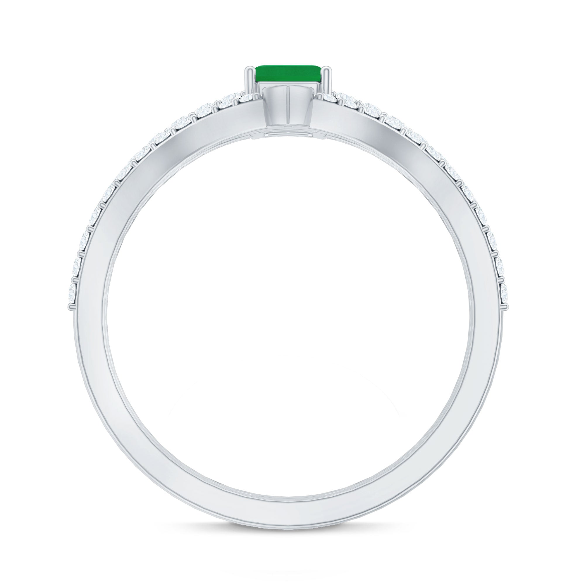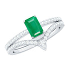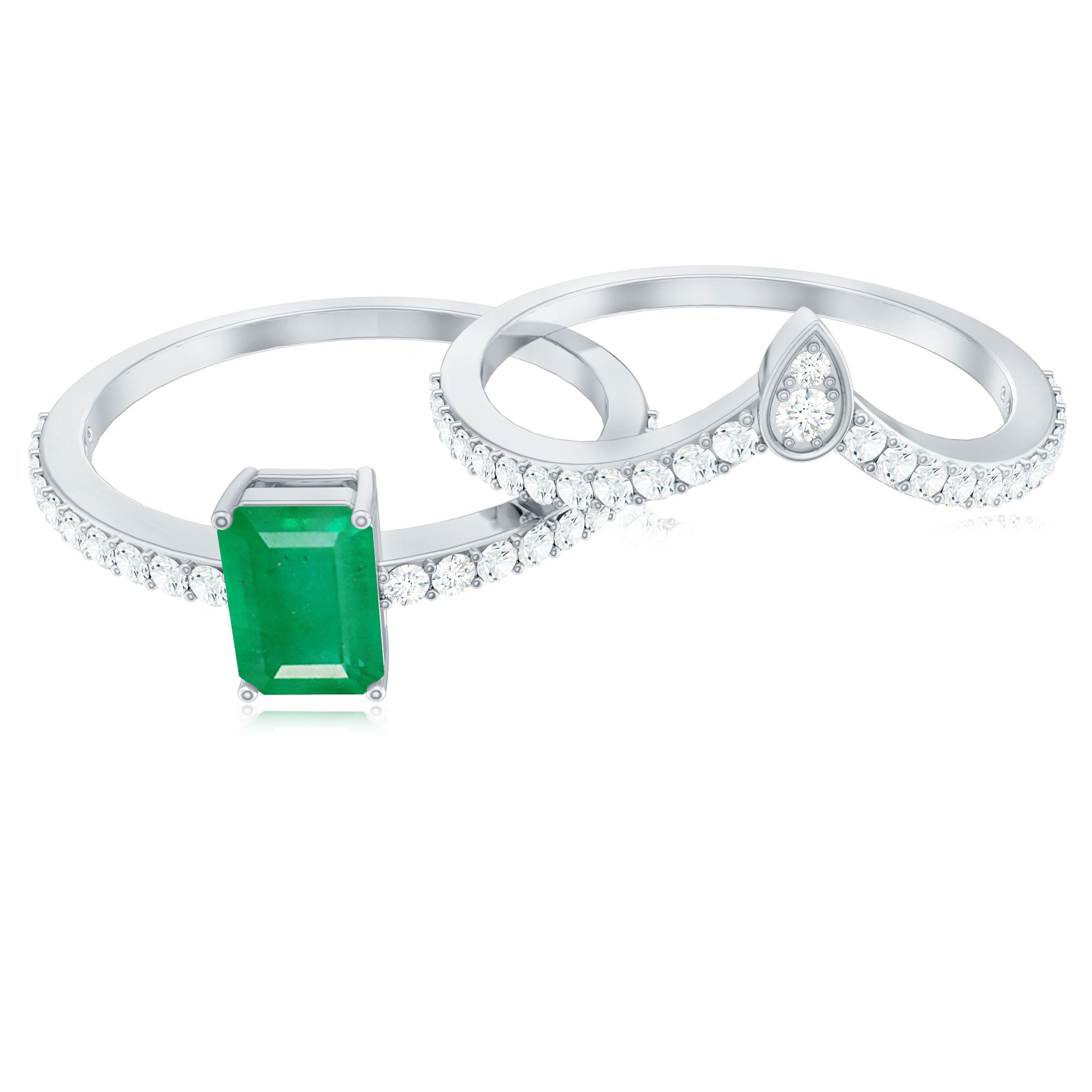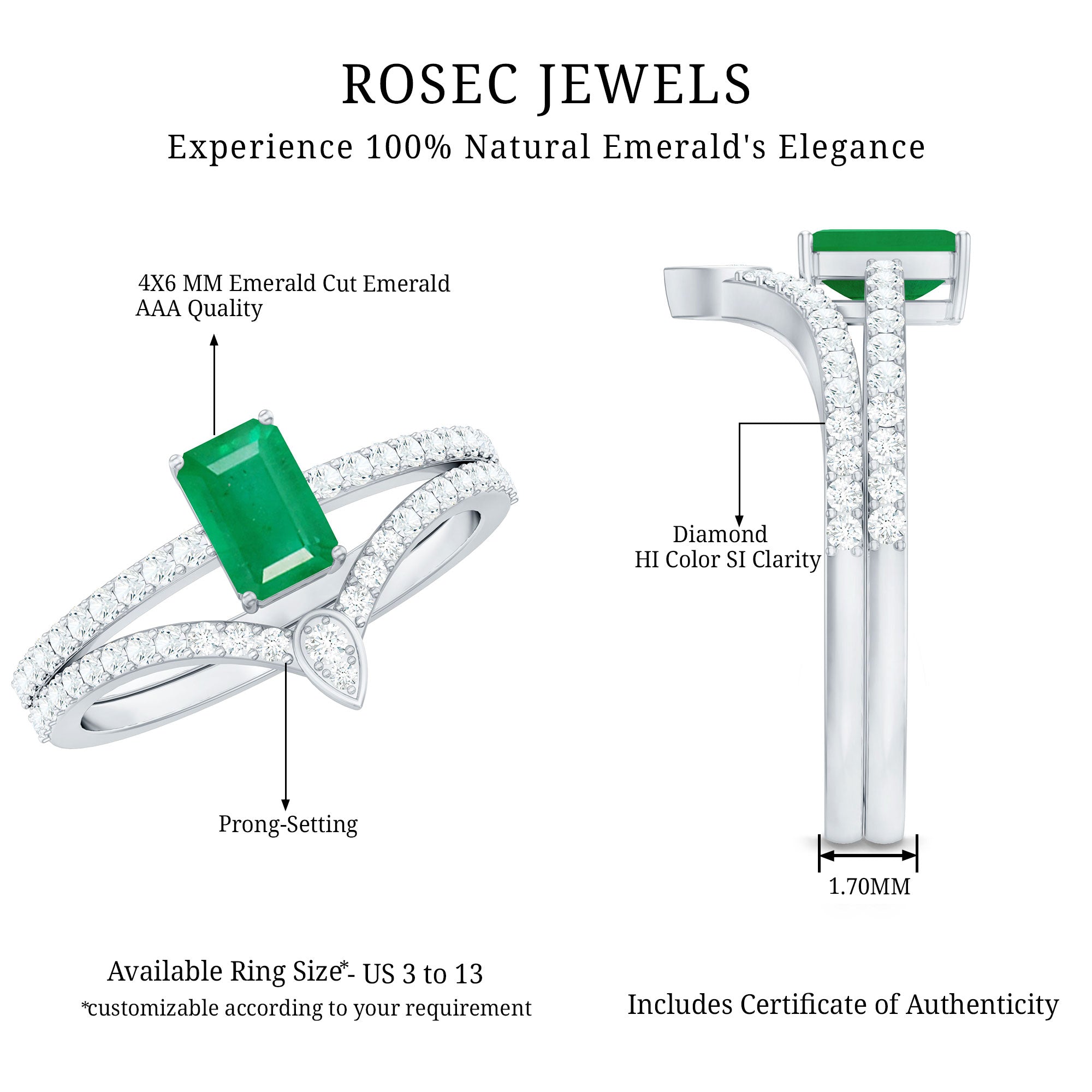 Commemorate the beginning of your forever with this stunning Wedding Engagement Ring Set, designed to capture the essence of timeless love. The Solitaire Engagement Ring of this 2 Piece Ring Set features a captivating 4X6 mm Emerald Cut Emerald set in Prong Setting, framed by sparkling Diamond Side Stones that shimmer with every graceful movement. The elegantly Curved Wedding Band, adorned with delicate Diamond stones, fits seamlessly alongside the Engagement Ring, perfect for stacking or wearing individually to create a look that is uniquely yours. Presented in a signature jewelry box and available in various ring sizes, this Emerald Wedding Ring Set is a symbol of shared dreams and cherished moments. Ideal for the bride who desires a blend of classic elegance and modern style, this Emerald Diamond Engagement Ring with Enhancer transforms every glance at your hand into a sparkling celebration of love. From the proposal to the wedding day and every milestone in between, let this Wedding Bridal Ring Set be a radiant reminder that true love is enduring and breathtakingly beautiful.