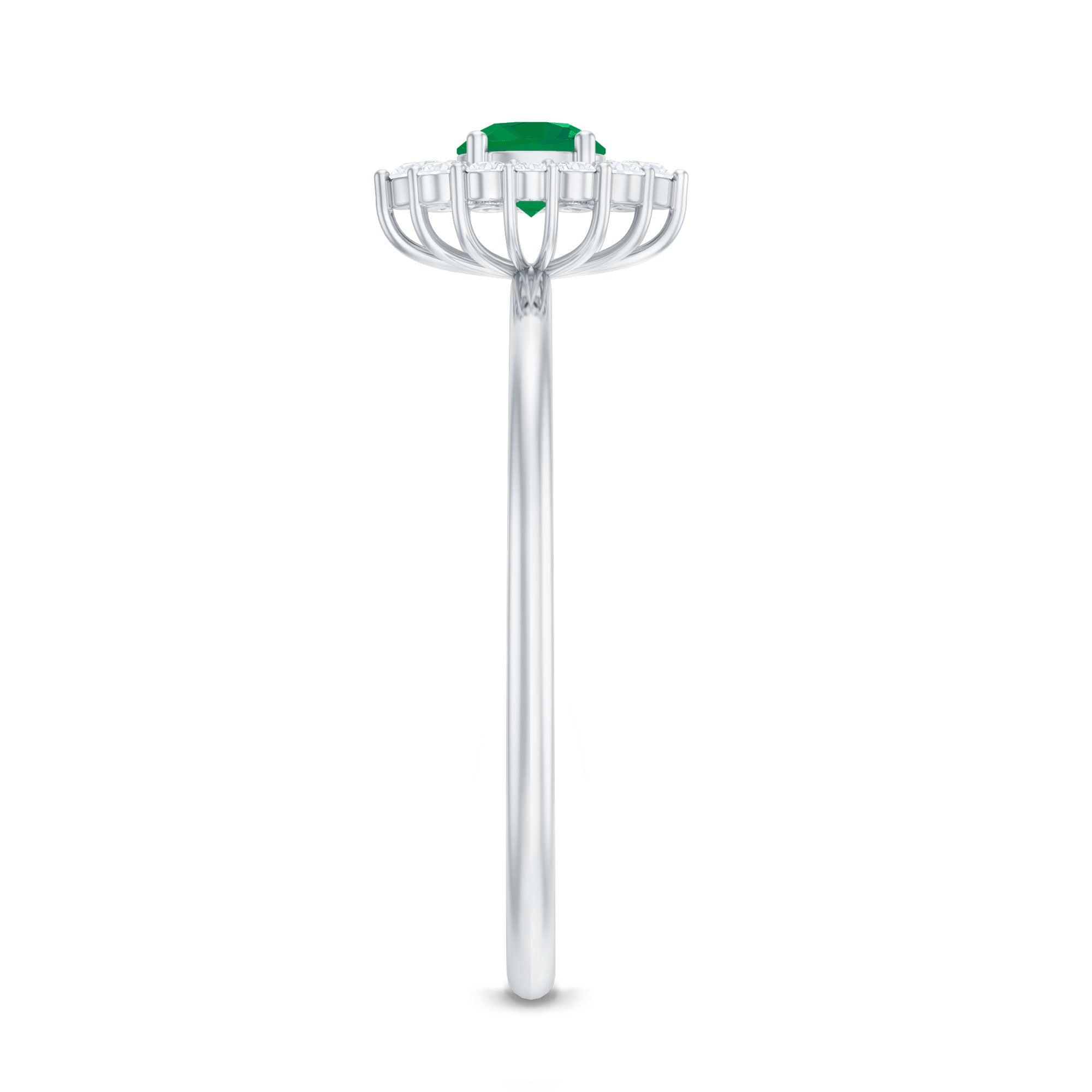 Certified Natural Emerald Promise Ring with Diamond Halo