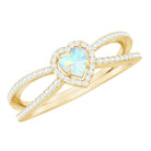 Love takes center stage with this Heart Shaped Engagement Ring, designed to dazzle and destined to be adored. At the heart of this breathtaking piece lies a 6 mm Heart Shape Ethiopian Opal, a gem that shimmers with soft rainbow hues, reflecting the many shades of true love. Surrounding it is a sparkling Diamond Halo, amplifying the magical glow of the opal, while a Split Shank Band adorned with dainty Diamond stones adds layers of sparkle and elegance. The split design symbolizes two paths joining into one, a perfect metaphor for your love story. This Opal Heart Ring is made for the romantic dreamer who feels a little deeper. Whether you are planning an unforgettable proposal or simply want to capture the essence of eternal love in a single moment, this Opal Diamond Engagement Ring speaks volumes without saying a word. This Split Shank Engagement Ring arrives in a beautifully crafted jewelry box, ready to gift and is available in a range of sizes for the perfect fit.