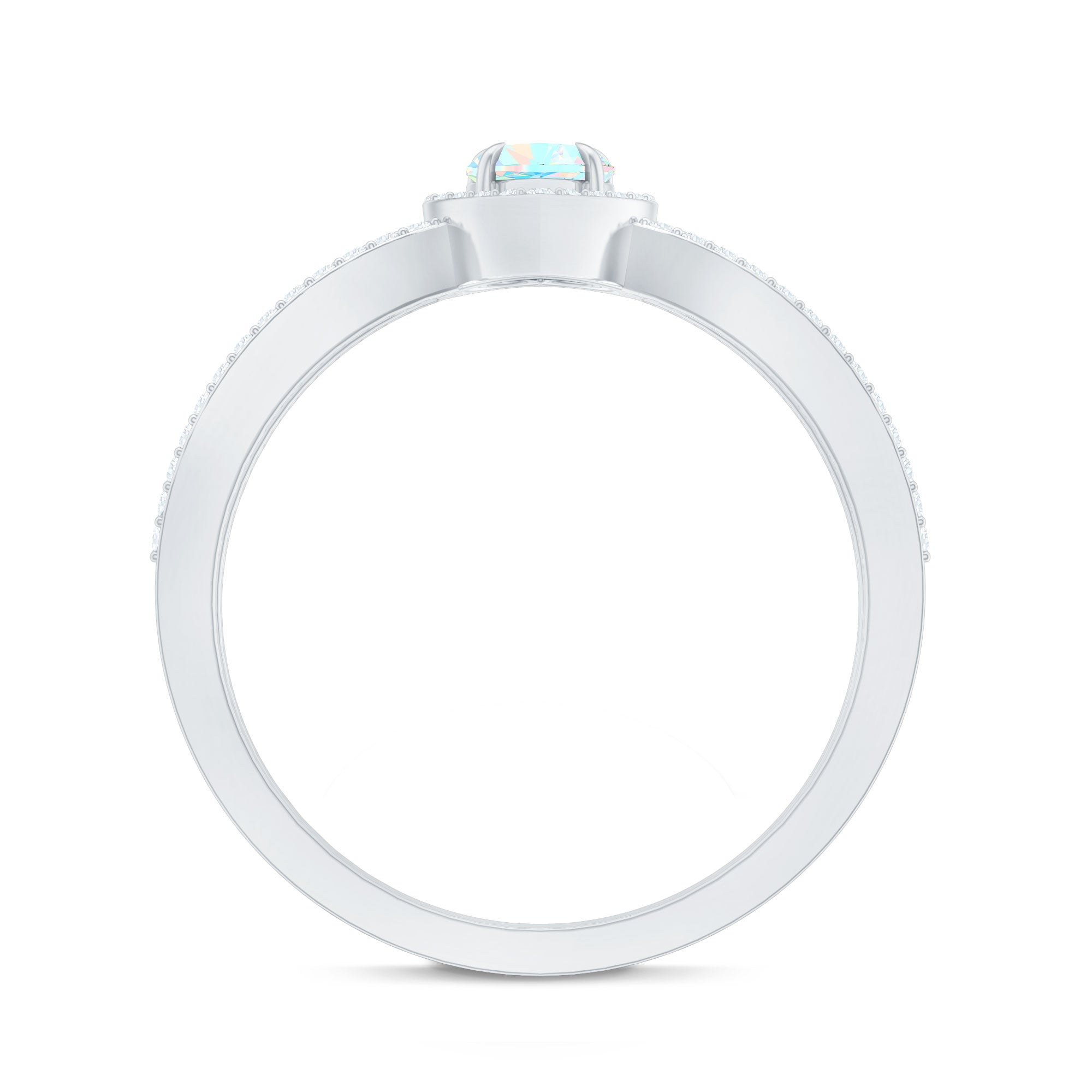 • Diamond halo setting: adds brilliance and defined framing.