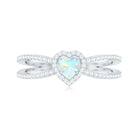 Surrounding the heart-shaped opal, a diamond halo enhances light reflection and adds a refined border of brilliance. The halo design visually emphasizes the center stone while providing a balanced, structured appearance. This combination of luminous opal and sparkling diamonds creates contrast that draws attention without overwhelming the centerpiece.