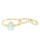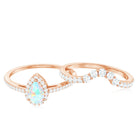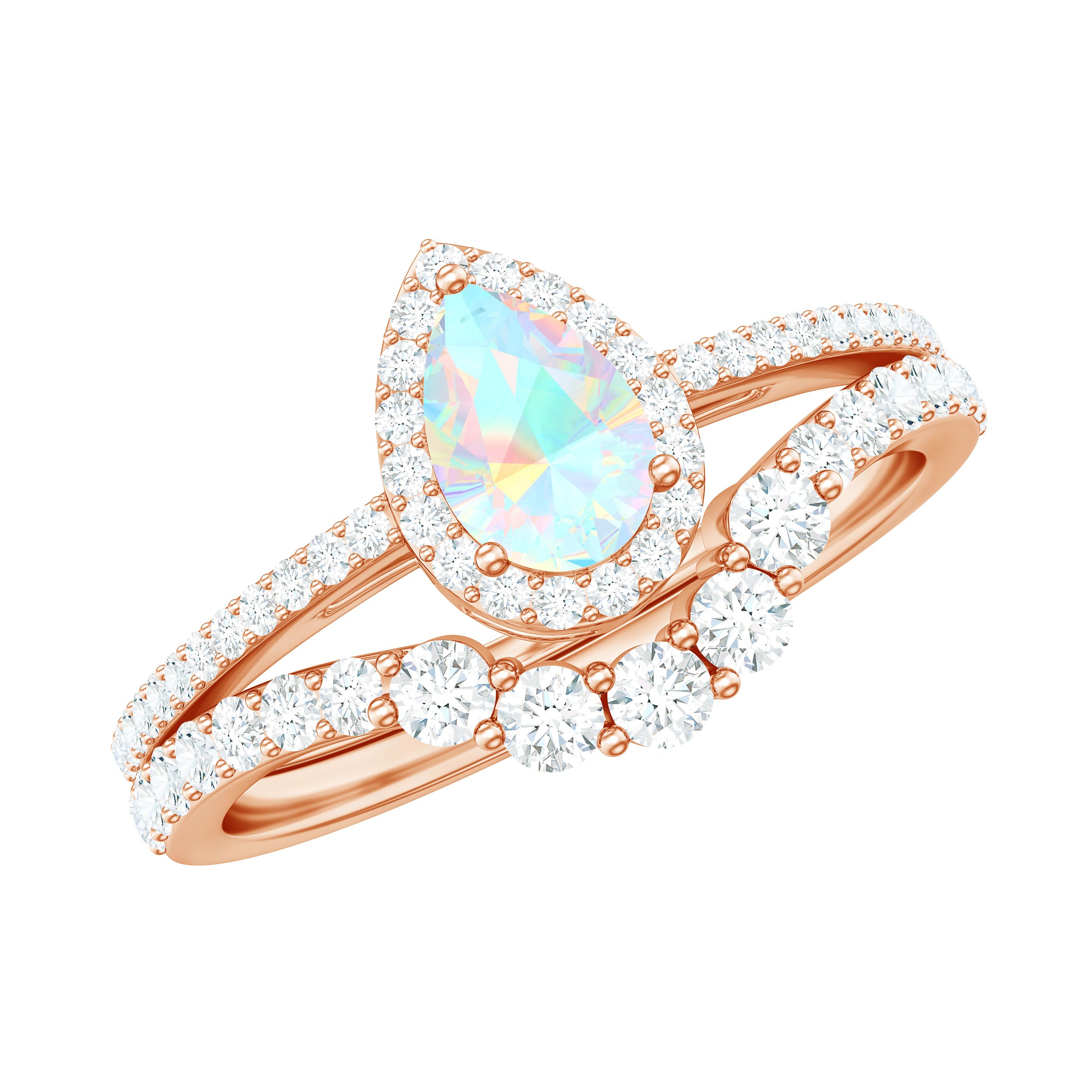 Certified Natural Ethiopian Opal Teardrop Wedding Engagement Ring Set of 2