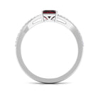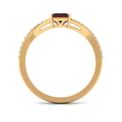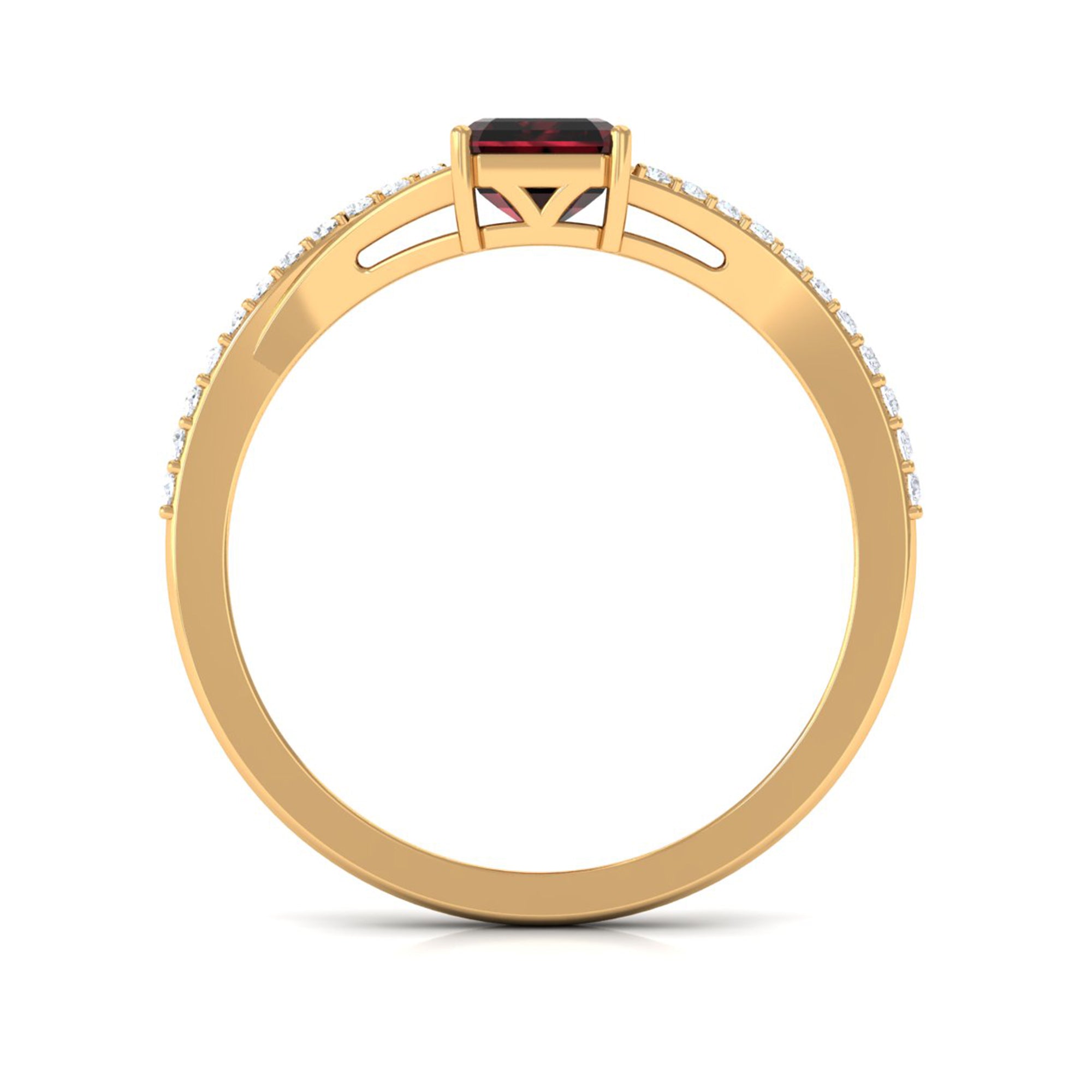 Certified Natural Garnet Emerald Cut Engagement Ring with Diamond Split Shank