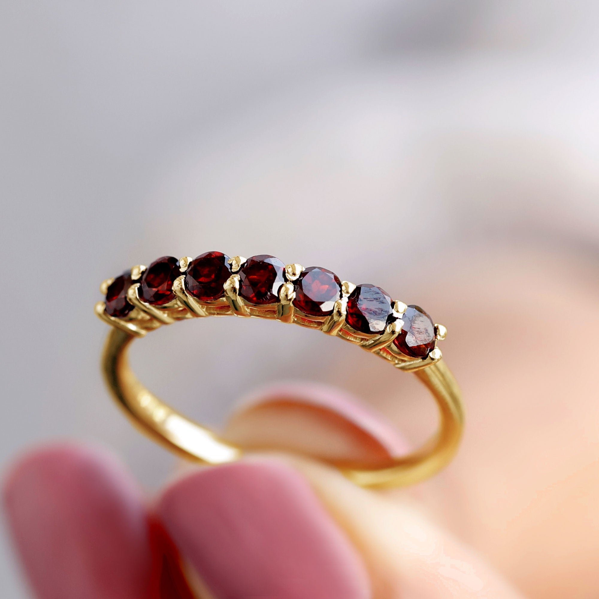 Understated yet full of meaning, this Half Eternity Ring is a beautiful celebration of love and lasting commitment. The deep, rich Garnet gemstones trace half the band, each stone reflects passion and elegance, while the open design allows the ring to shine with modern simplicity. Perfect for anniversaries or special milestones, this Garnet Ring expresses eternal love in a subtle but unforgettable way. Crafted with precision and available in various US ring sizes, this Garnet Eternity Ring is designed to fit comfortably and be cherished for years to come. Delivered in a signature jewelry box, this Red Garnet Ring arrives ready to gift, making the moment of giving as magical as the ring itself. Its versatile style allows it to be worn alone for a delicate statement or stacked with other rings for a layered, contemporary look. This Garnet Ring for Women is a heartfelt symbol, a promise that your love is enduring, elegant and forever.