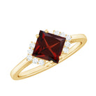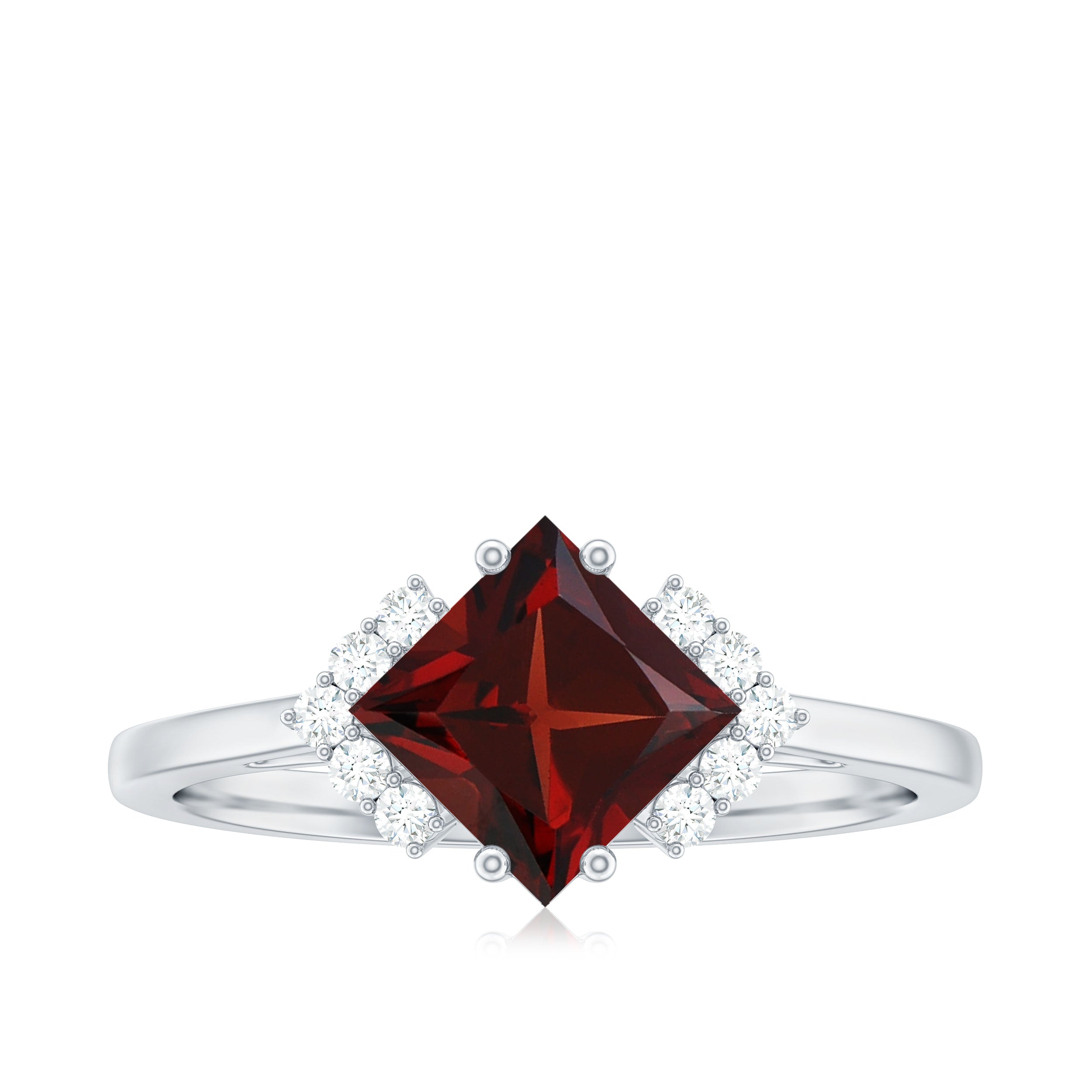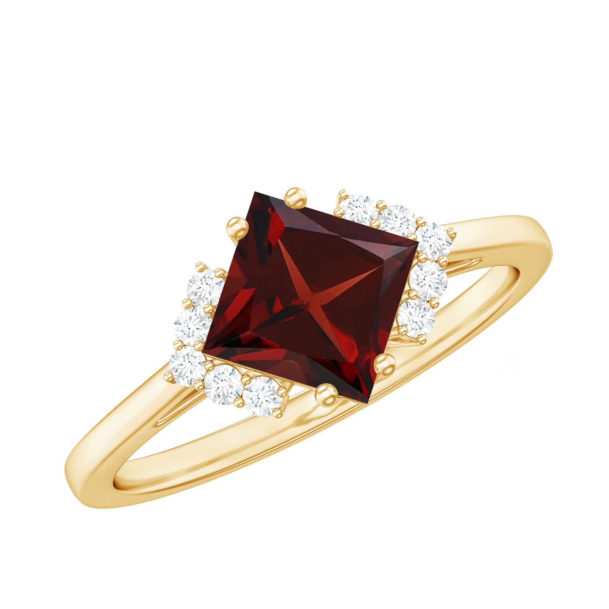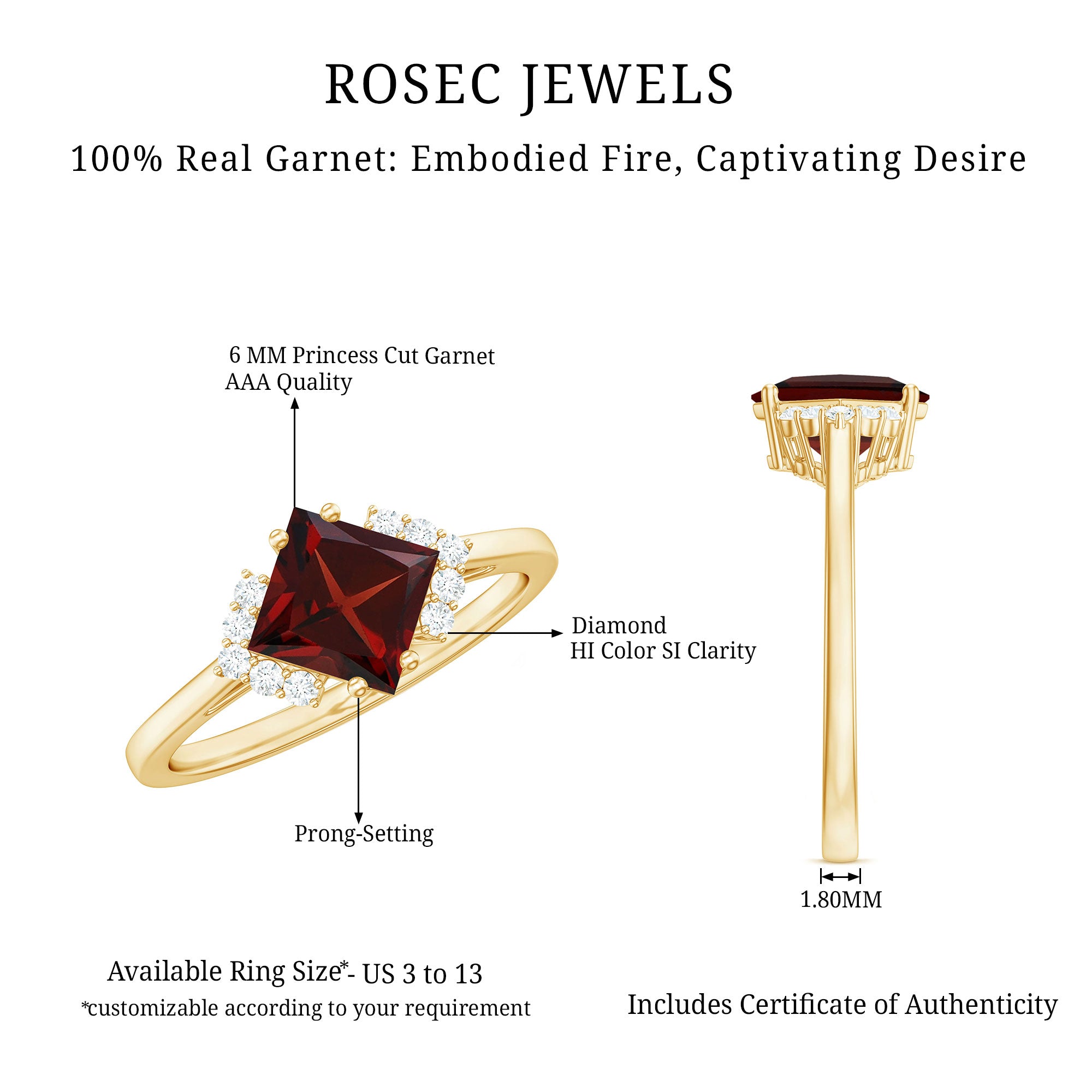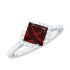 Certified Natural Garnet Princess Cut Engagement Ring with Diamond