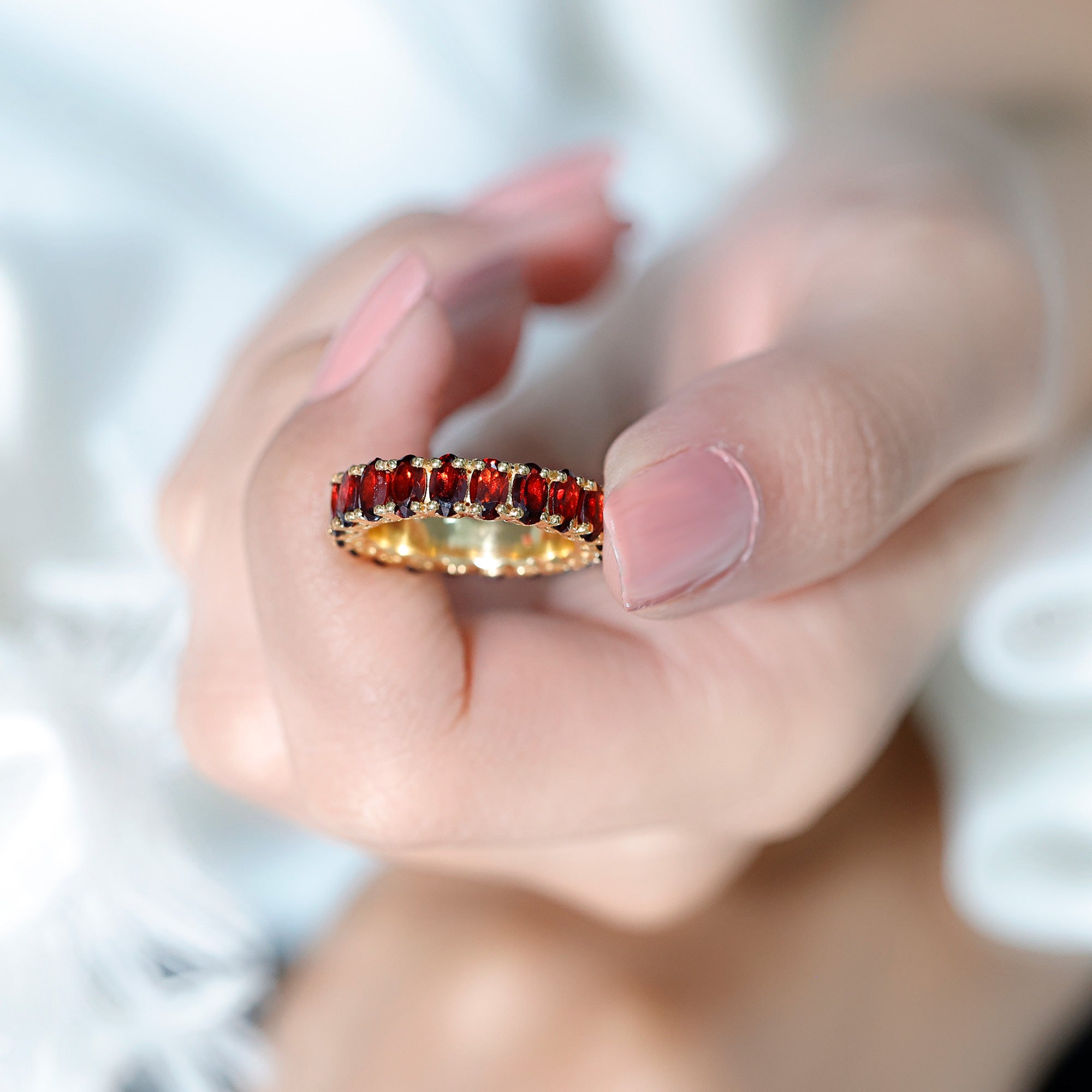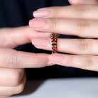 A timeless addition to your journey of love, this Full Eternity Ring is a breathtaking symbol of passion, loyalty and never-ending devotion. This Fine Band Ring features 3X5 mm Oval Shape Garnet gemstones perfectly set around the band to create an unbroken circle, representing a bond that grows stronger with time. The deep red hues shimmer with warmth and emotion, making this Oval Eternity Ring an ideal choice for anniversaries, milestones or any moment that deserves to be remembered forever. Its elegant design speaks of sophistication, while the Oval Shape stones bring a touch of vintage romance to a modern heart. Whether worn alone for a subtle sparkle or stacked with other rings for a bold statement, this Garnet Eternity Ring adds undeniable charm to every look. Delivered in a signature jewelry box, this Red Garnet Ring arrives ready to gift and ready to steal hearts. Available in various US ring sizes, the Garnet Birthstone Ring is a reflection of your everlasting love story, a reminder that some connections are meant to shine for a lifetime.