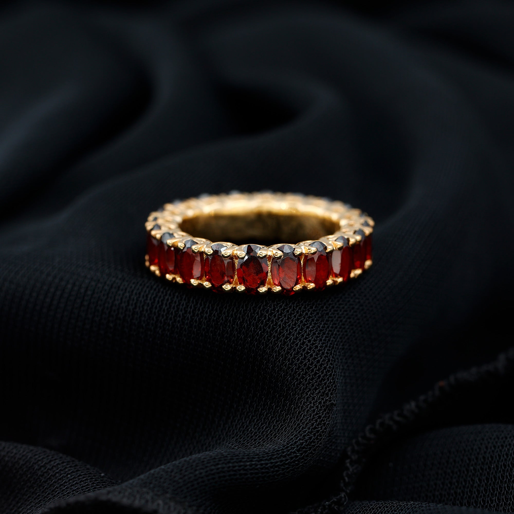 Certified Natural Oval Garnet Eternity Ring for Wedding