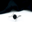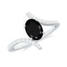 Certified Oval Cut Black Onyx Bypass Engagement Ring with Diamond