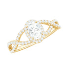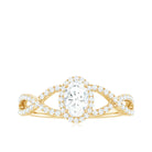 Certified Oval Cut Moissanite Halo Engagement Ring with Crossover Shank