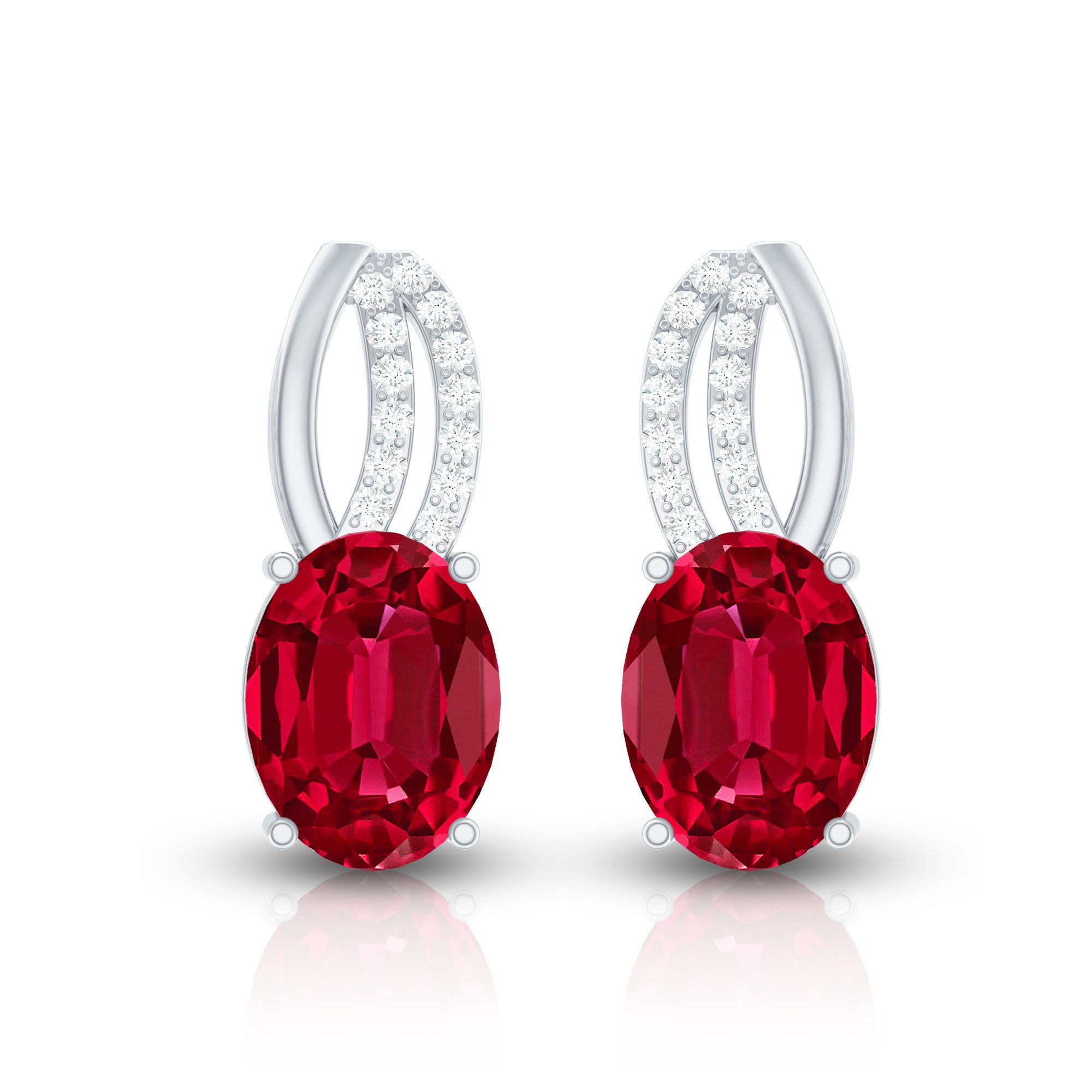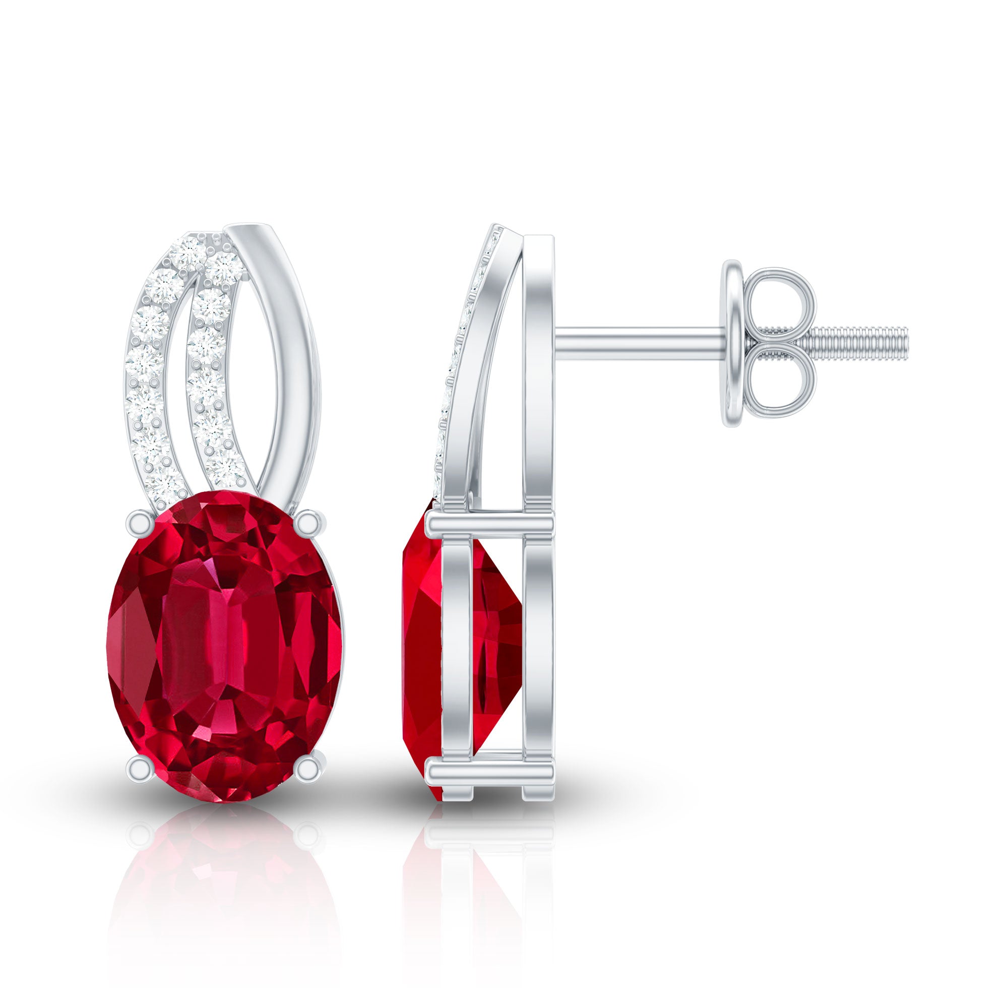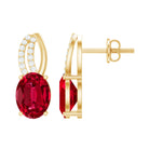 Certified Oval Lab Created Ruby Stud Earrings with Diamonds