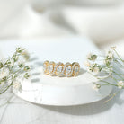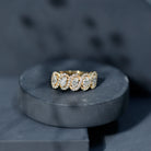 This Diamond Wedding Ring completes the moment when love is in the air, it is crafted to shine with timeless beauty. This Half Eternity Ring is curated with oval shaped 5 lab made diamonds that take the spotlight, held in prong setting. Adding to its elegance, each oval-shaped gemstone is surrounded by diamond halos, enhancing the beauty of the overall design. This Anniversary Ring for Women comes with a certificate of authenticity and a signature jewelry box so, you can store your ring safely when not in use. With customization options available, you can make this Wedding Eternity Band Ring truly one-of-a-kind.