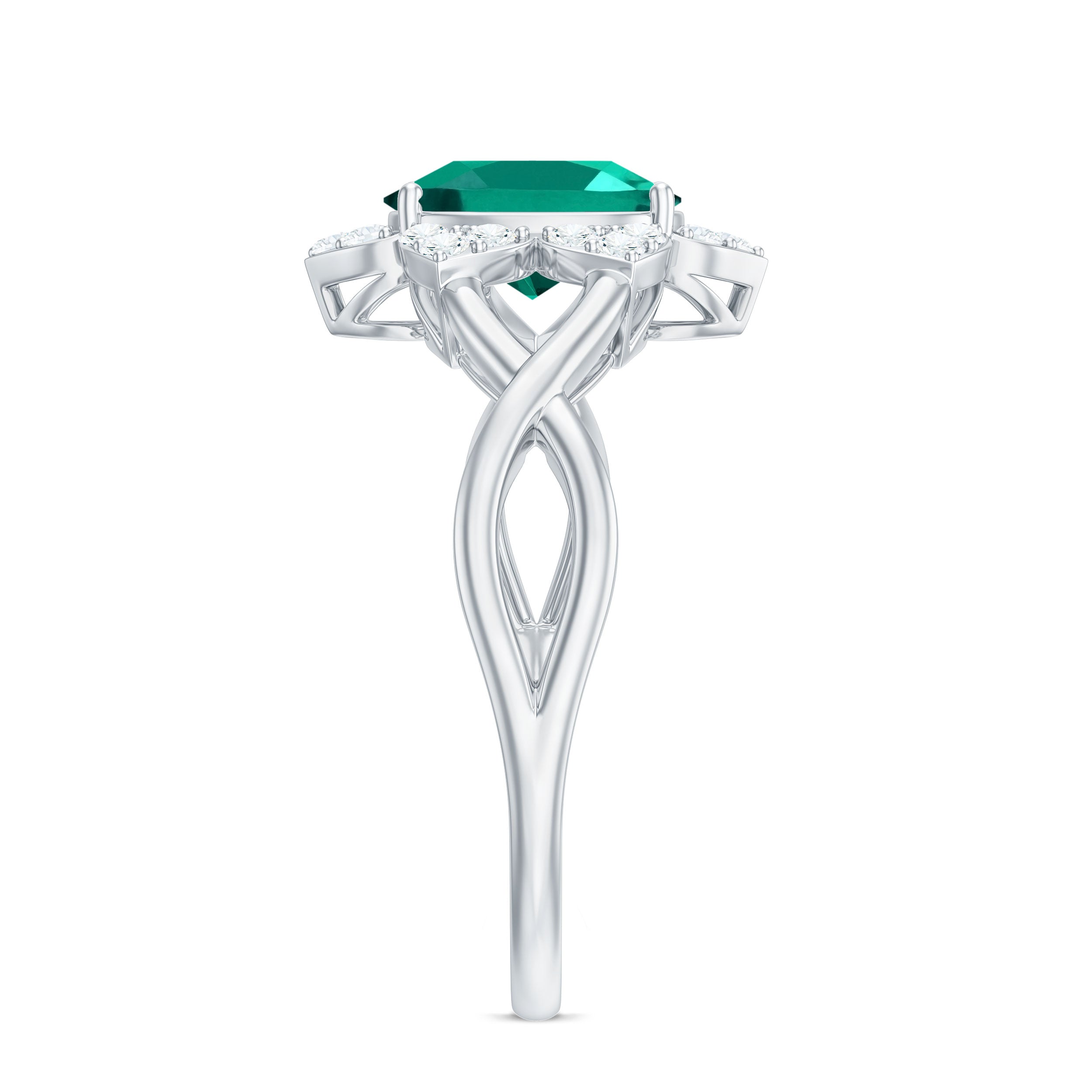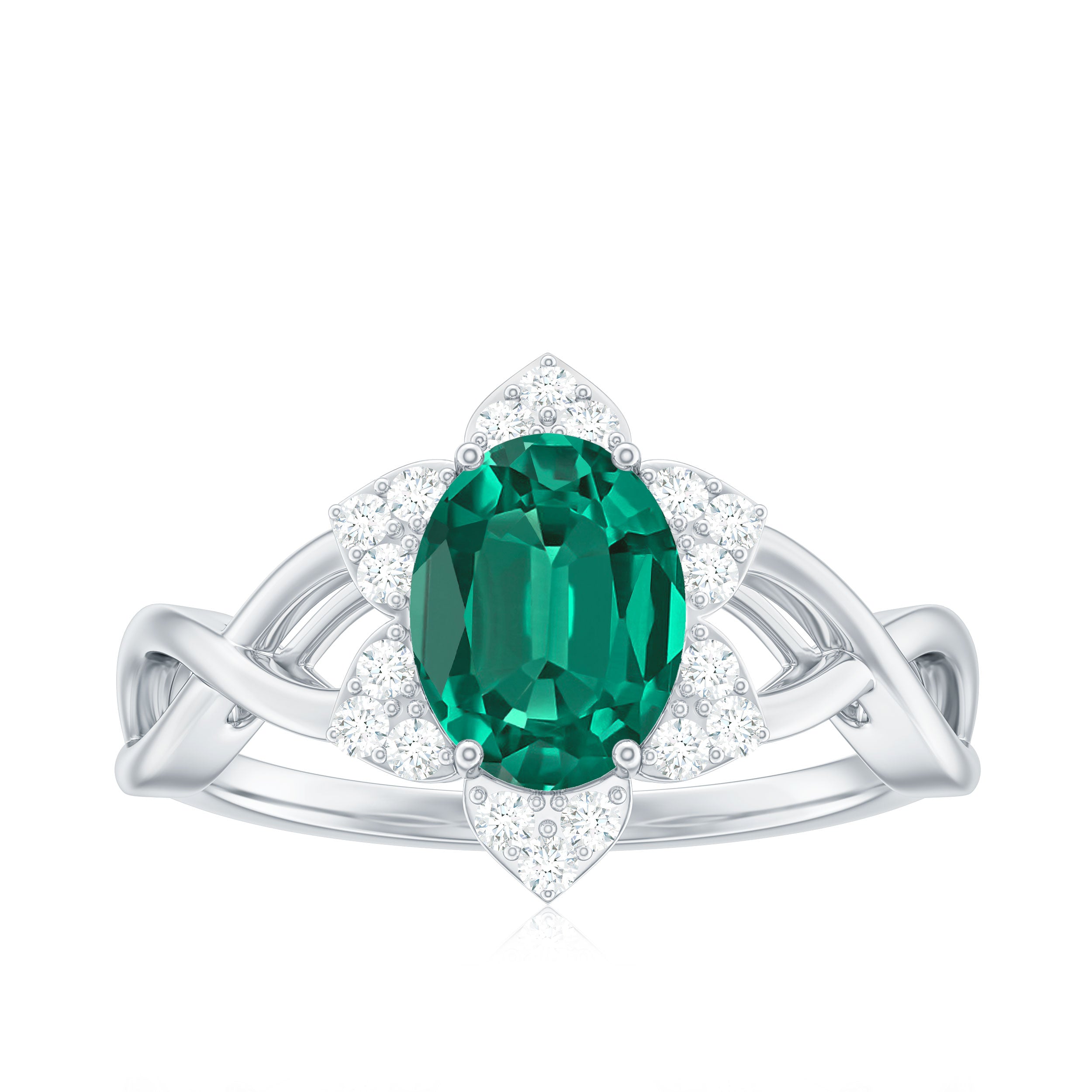 Certified Oval Lab Grown Emerald Diamond Flower Engagement Ring with Crossover Shank