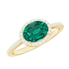 Certified Oval Lab Grown Emerald East West Engagement Ring with Diamond Halo