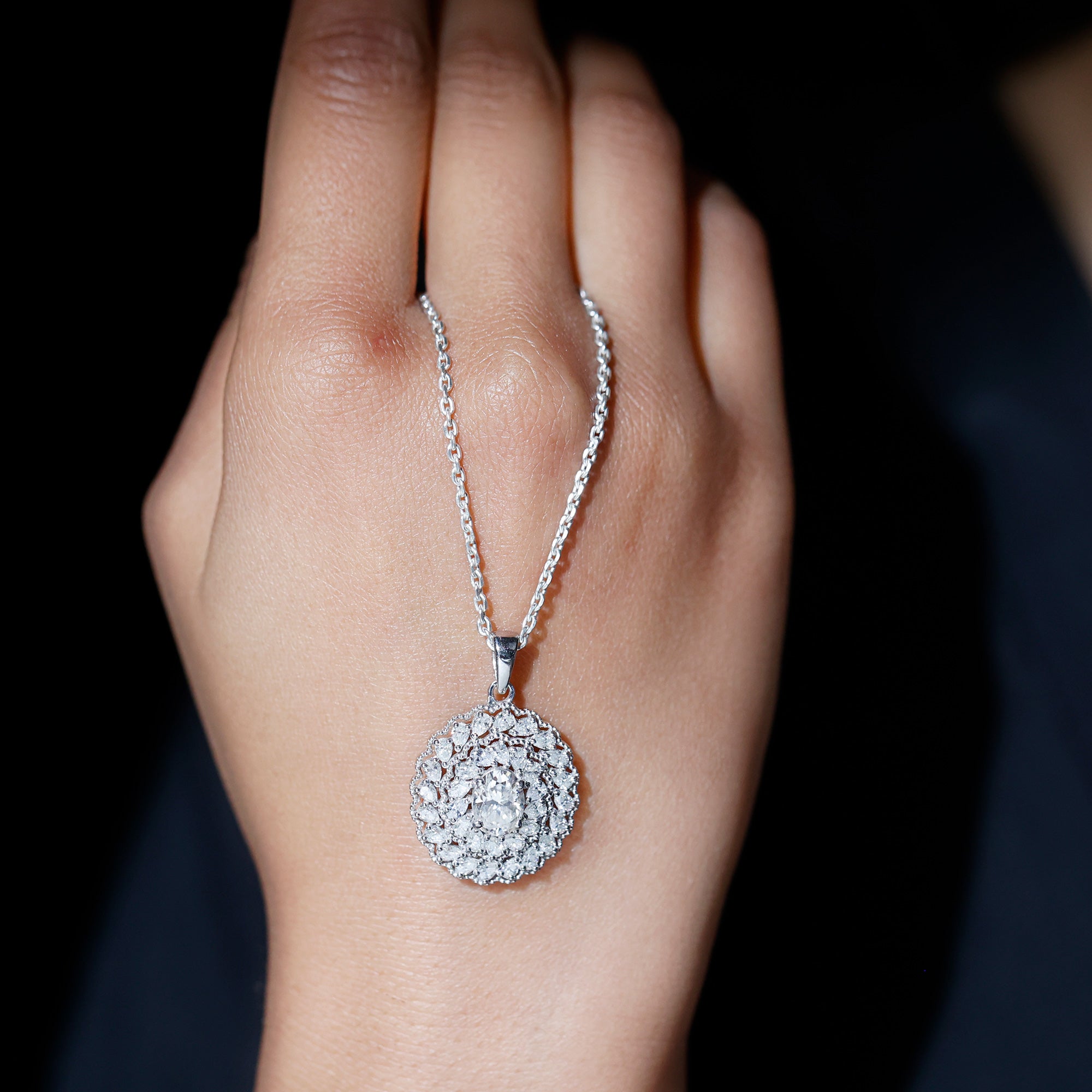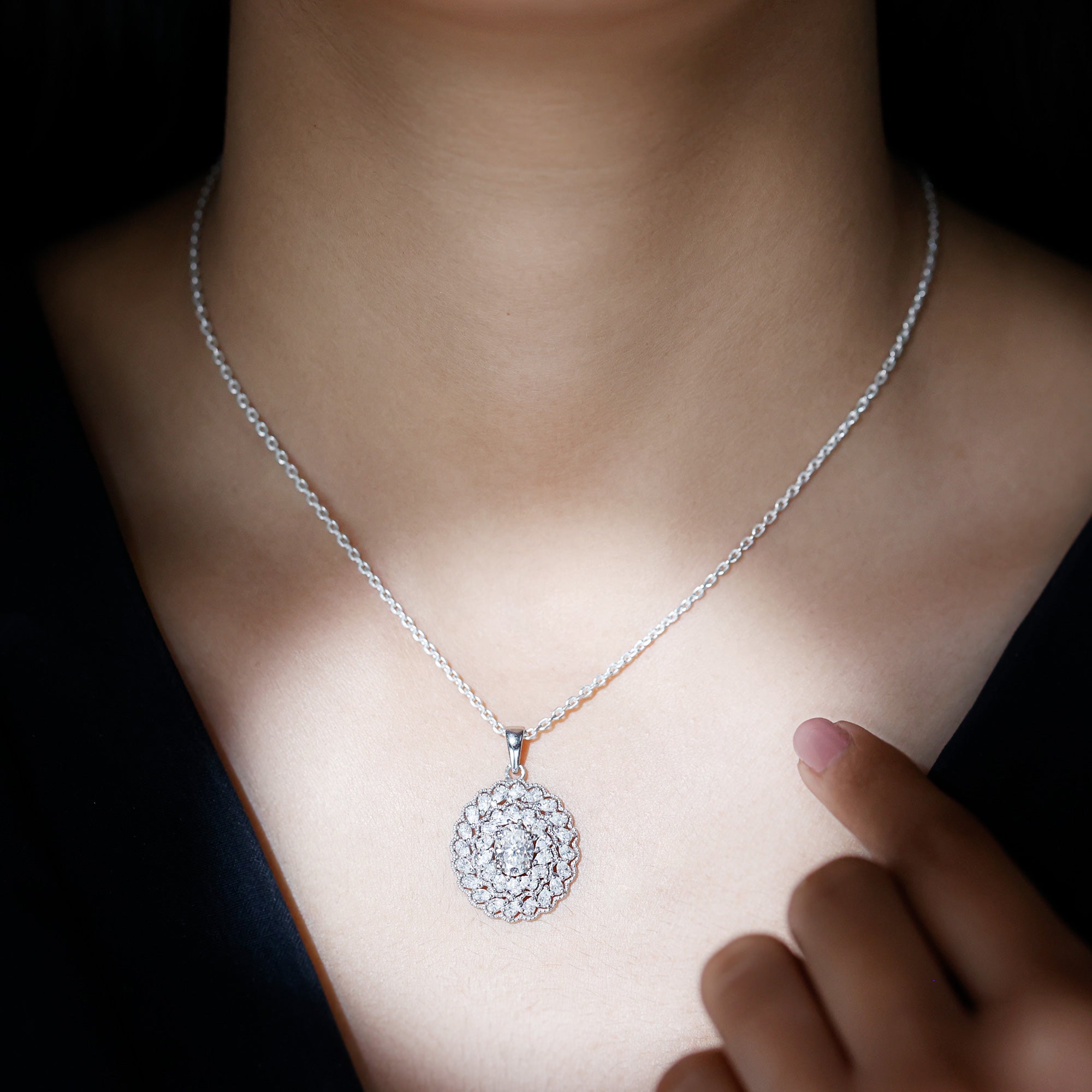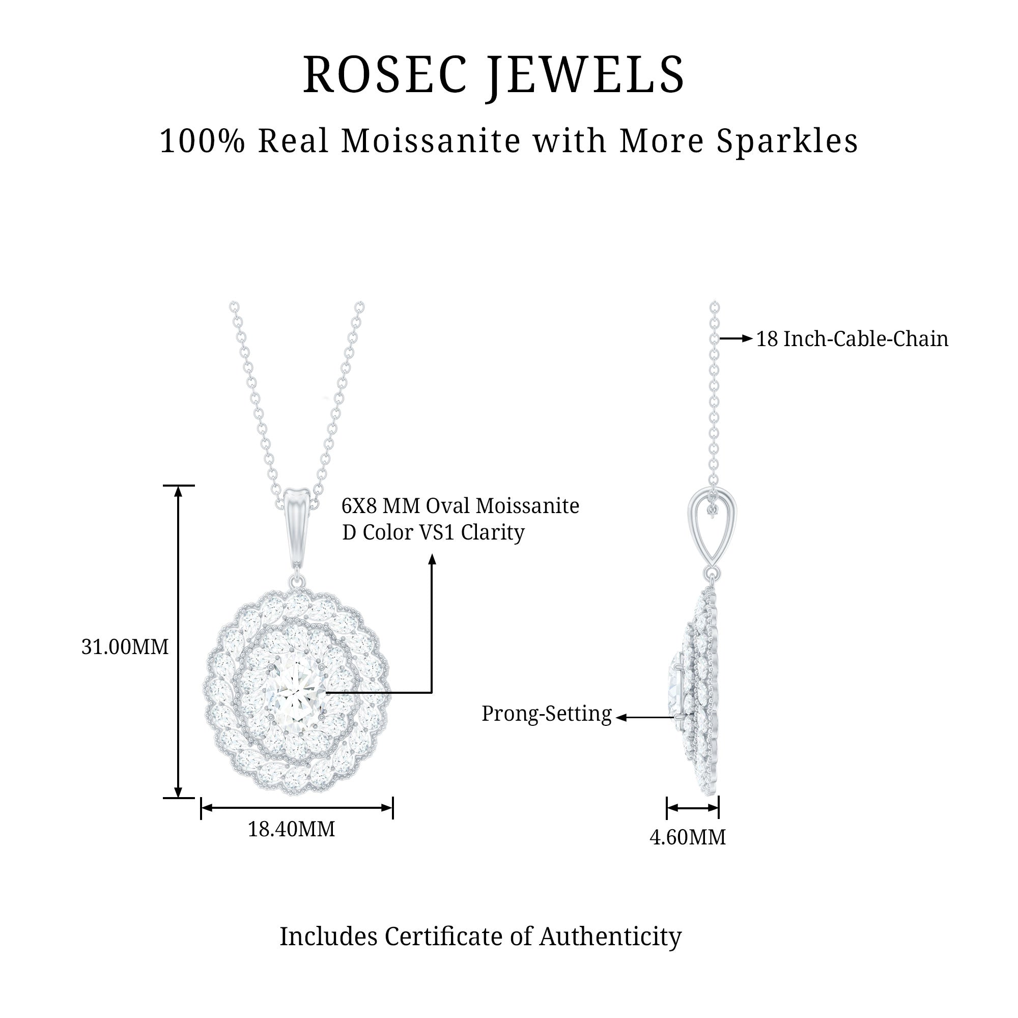 Add this bold and beautiful Moissanite Pendant, which reflects an inner radiance and channels confidence for the day. This Statement Pendant features a 6X8 MM Oval Shape Moissanite of D-VS1 Quality Secured in Prong Setting and encircled by double halo of smaller Pear Shape Moissanite, which amplifies the beauty of the pendant. This Halo Pendant is beautified with beaded embellishment that creates a mesmerizing and vintage look. This Statement Pendant will be perfect to be styled for cocktail parties, which makes you the center of attraction. This Oval Shaped Pendant is a statement piece but can also be styled as a base of the necklace stack by other minimal layering necklaces to create a mesmerizing stack.