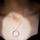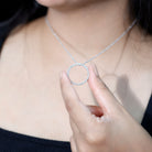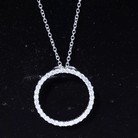 This Round Pendant Necklace is beautifully simple and stylish, providing the classic elegance you want for your special occasions. Made with care in 14K White Gold Plated Silver, this Circle Pendant Necklace can effortlessly elevate your everyday outfits. Adorned with round cut D-VS1 quality moissanite stones set in a circular metal frame in pave setting, the design represents your everlasting love. It hangs from a strong cable chain that allows you to adjust it to different lengths. Our Moissanite Eternity Necklace is a symbol of forever love, perfect for gifting on special occasions such as Valentines Day, Anniversaries, Birthdays, New Year, Christmas, and many more.