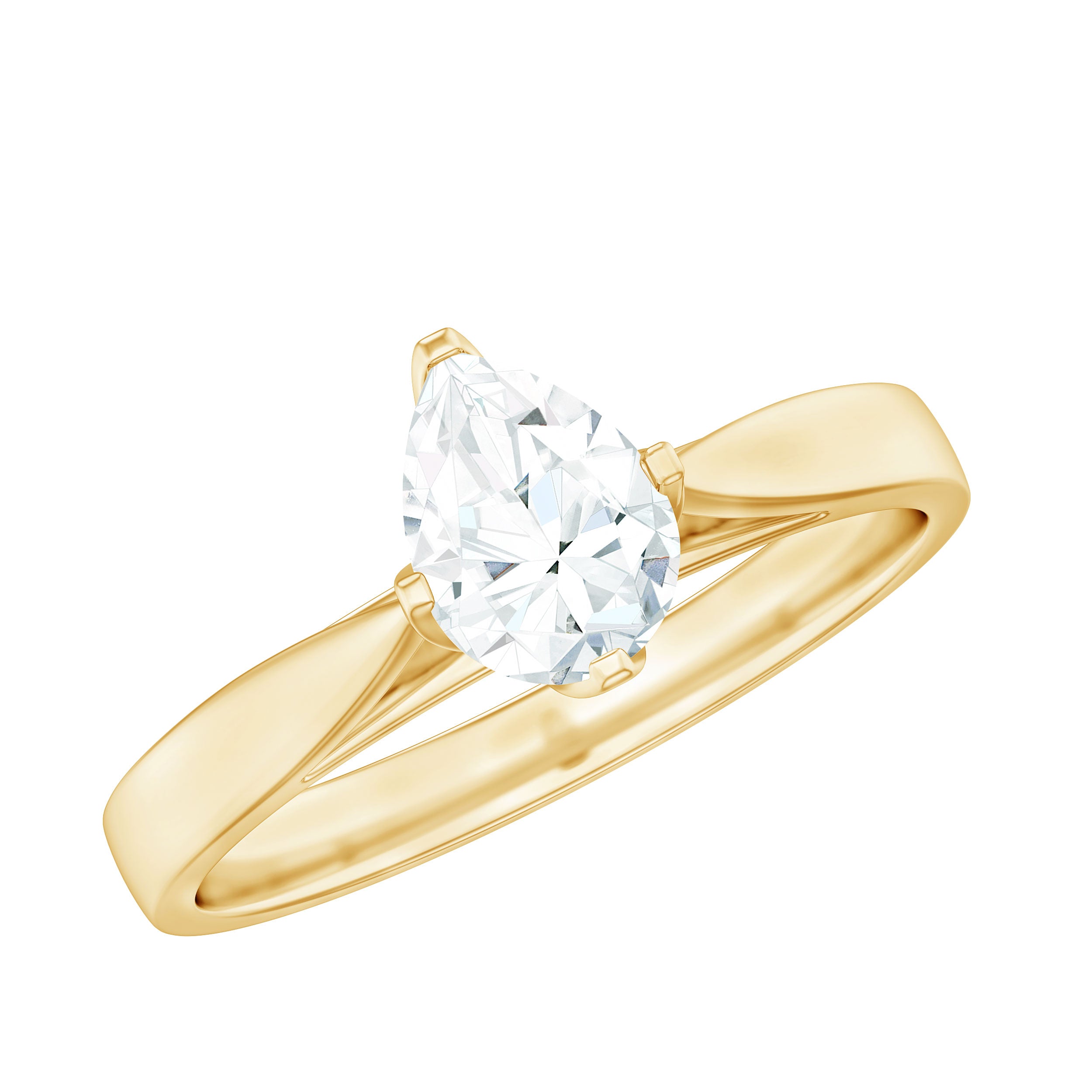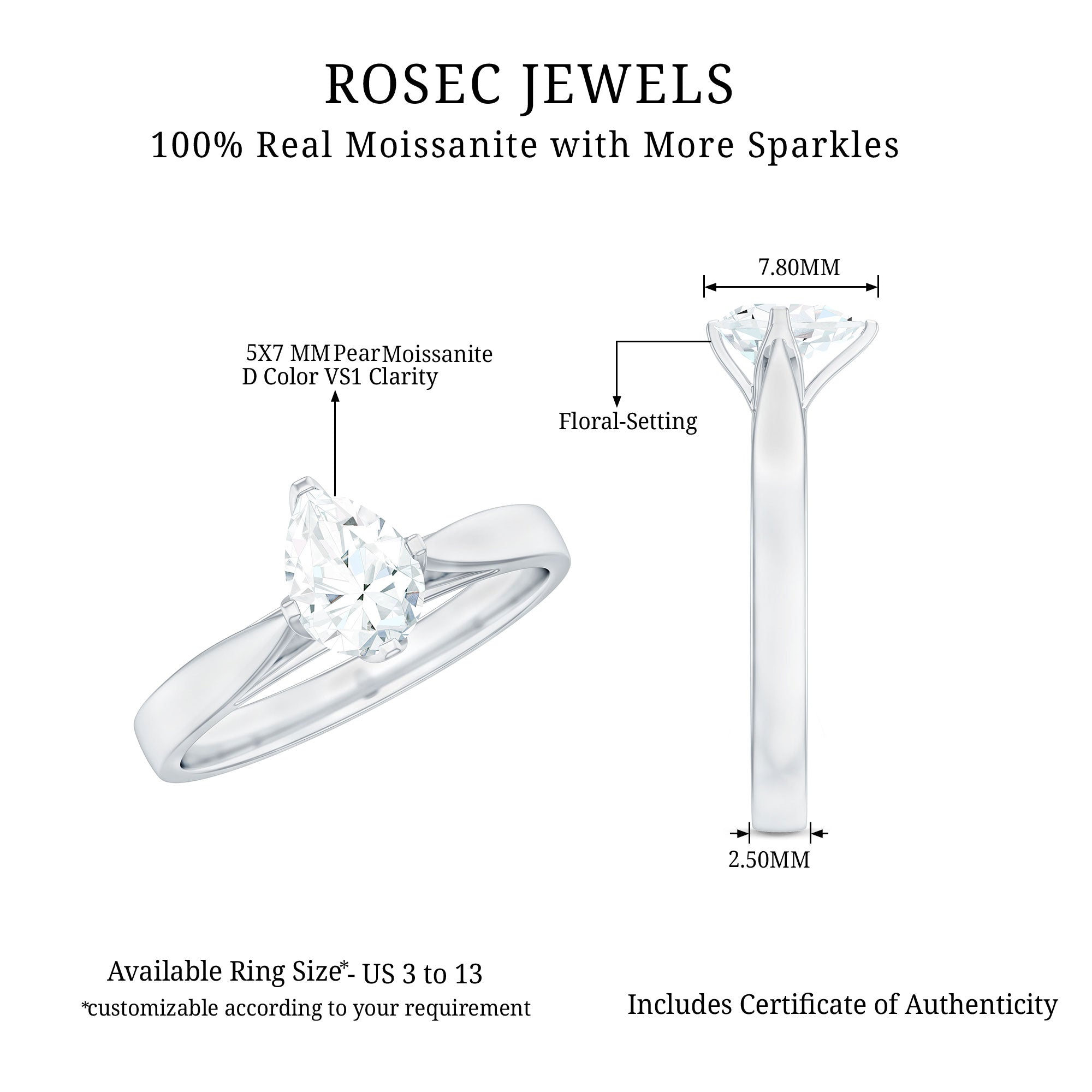 Certified Pear Shaped 5X7mm Moissanite Solitaire Engagement Ring