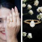 Who says a ring cant steal hearts? This Solitaire Moissanite Engagement Ring is here to prove it can! Featuring a pear-shaped 5X7 MM moissanite (D color, VS1 quality) at its center, set on a polished metal pinched shank, it looks simply stunning. This Pear Shaped Engagement Ring exudes modern elegance and refinement, making it perfect for those who appreciate timeless simplicity with a touch of sophistication. Whether for a proposal or to add everyday elegance, this Teardrop Ring radiates classic beauty and grace. Gifting her a Solitaire Ring is a significant emotional investment for the future of your relationship, as it holds memories of special moments. The design of this Moissanite Ring for Women is perfect for modern romance, appealing to those who appreciate a touch of sparkle with character. It symbolizes forever, captured in a style that feels both timeless and uniquely yours. Let this stunning Solitaire Engagement Ring be the one that makes your heart race and leaves everyone around completely enchanted.