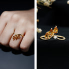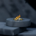 Effortlessly stylish and full of charm, this Engagement Ring Guard brings a fresh, radiant touch to your jewelry collection. Thoughtfully crafted in 14k yellow gold plated silver with a graceful design, it is the perfect enhancer to elevate the look of your existing solitaire or engagement ring. At the heart of this Bridal Enhancer Ring are pear shaped natural citrine stones, carefully set in prongs to create a delicate leaf-like pattern. A dainty round brilliant cut lab grown diamond, adding a touch of sparkle and contrast that completes the overall look with sophistication. This Wedding Ring Enhancer is designed to wrap around your engagement ring, transforming its look while adding elegance and brilliance. Its chevron-like pattern gives your finger an elongated appearance, enhancing the visual appeal with a touch of classic charm. Whether you are looking to upgrade your bridal set or simply add more dimension and sparkle, this Yellow Gold Enhancer Ring offers a simple yet impactful solution. The combination of AAA quality Citrine and EF-VS quality lab grown diamond makes this piece both meaningful and ethically beautiful. Whether worn daily or for special occasions, this enhancer brings new life to your ring and ensures all eyes are on your hand. Presented in a signature jewelry box and comes with a gemstone certificate, it is a gift to treasure, for yourself or someone you love.