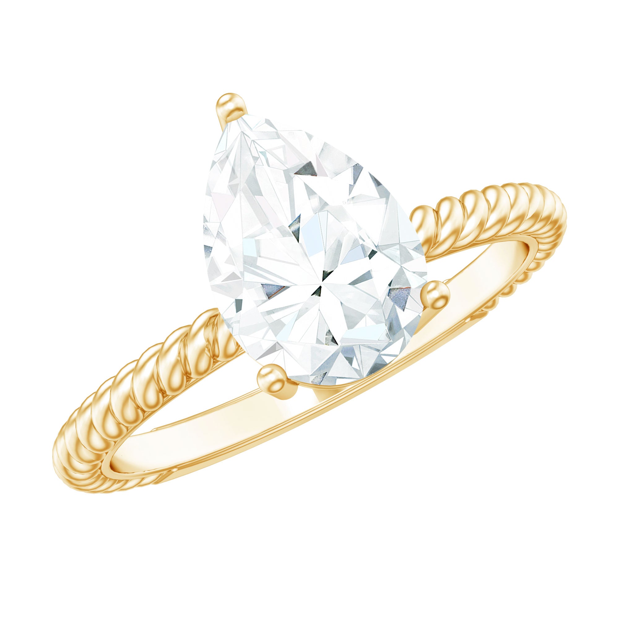 This elegant Solitaire Engagement Ring is beautifully embellished at the center with sparkling Pear Cut Zircon, while Twisted Rope Shank adds a dramatic look. The Pear Zircon Ring in Solid Metal will enhance your style and make you the center of attention. Your partner will love the Zircon Ring, a precious anniversary gift she will never forget.