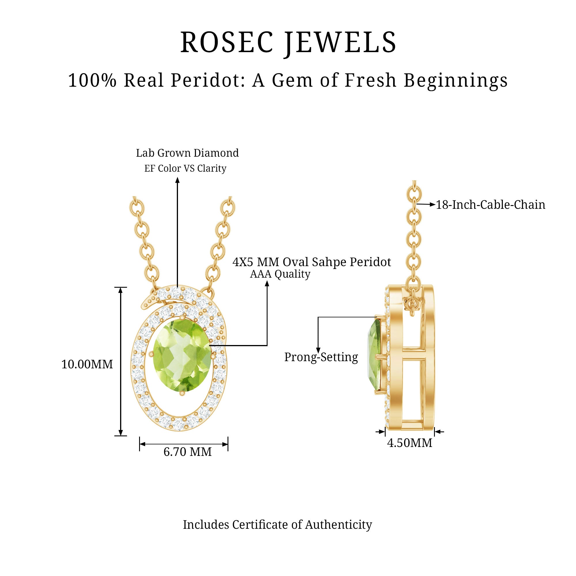Certified Peridot and Diamond Swirl Necklace with Silver Chain