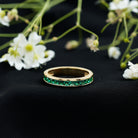 Add a pop of vibrant elegance to any moment with this gorgeous Half Eternity Band. The design features a row of lush green 3 mm Princess Cut Lab Created Emerald gemstones set in Channel Setting, each carefully set next to the other to create a seamless band of green brilliance. Their edges and vivid sparkle bring a modern edge to the timeless eternity style, making this Princess Cut Emerald Ring both chic and versatile. Crafted with Lab Grown Emerald of Aaaa Quality, this Emerald Band Ring offers the same beauty and allure of natural gemstones. This makes it an ideal choice for marking milestones, celebrating special occasions, or simply an enhancer of the everyday style with a bold yet graceful touch. Perfect for gifting or stacking, this Lab Grown Emerald Ring pairs beautifully with engagement rings, wedding bands, or other eternity styles, allowing endless ways to personalize your look. Available in various ring sizes from 3 to 13, this Emerald Green Ring allows you to find the perfect ring for your beloved or yourself. Charming and meaningful, this Emerald Half Eternity Band is an affordable luxury worth treasuring.