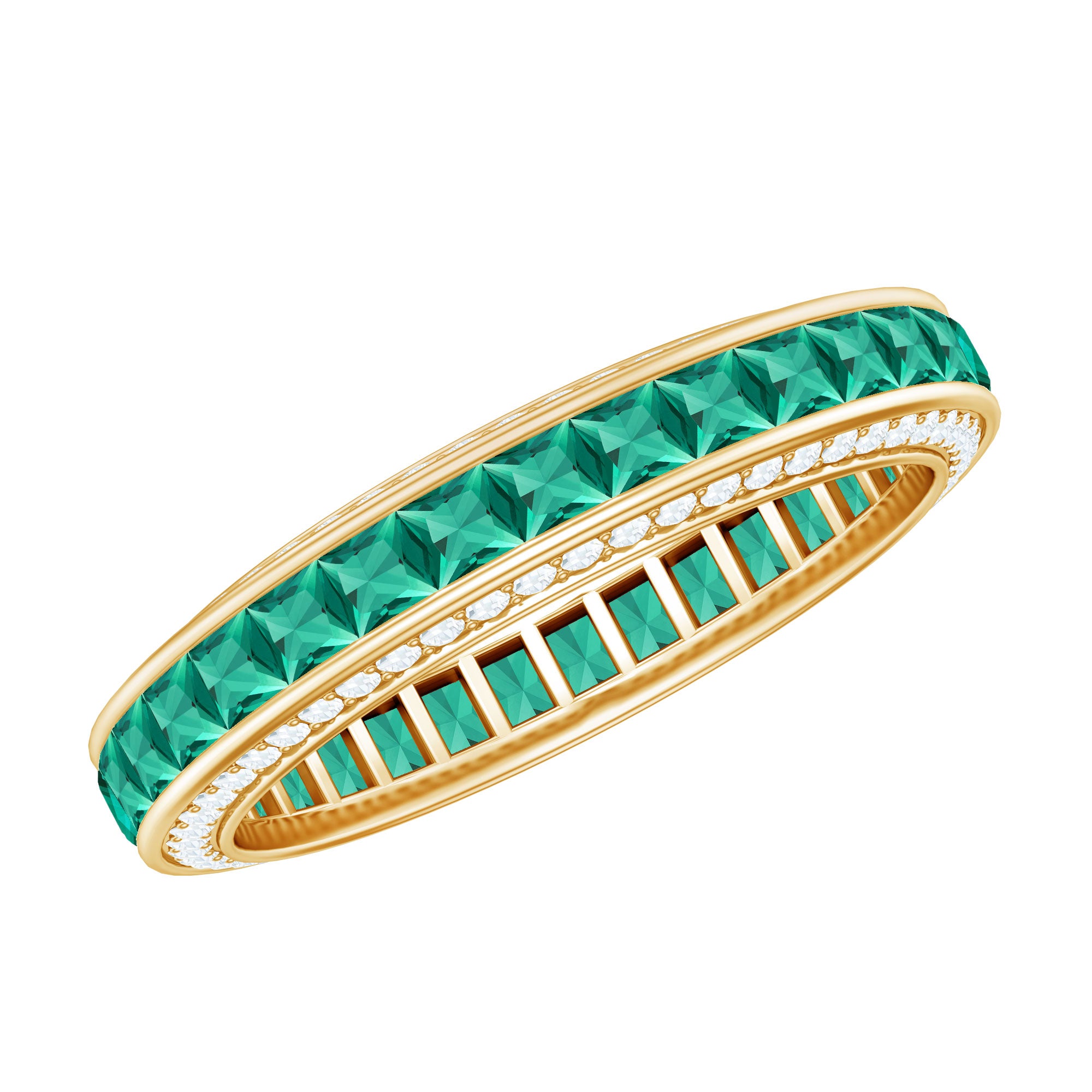 Certified Princess Cut Lab Grown Emerald Eternity Wedding Band in Channel Setting