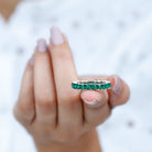 Certified Princess Cut Lab Grown Emerald Wedding Band