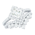 Looking for a perfect ring set for your bride, weve got your back with this Zircon Bridal Ring Set crafted with 14K White Gold Plated Silver. The CZ Ring Set consists of an engagement ring and an enhancer band. A 6 MM Princess Cut Cubic Zircon surrounded by petite stones on the Engagement Ring. Whereas the enhancer band is studded with round shape Zirconia securely placed in Prong Setting. This Princess Cut Wedding Ring Set beholds the unmatchable shine of AAAAA Quality Cubic Zircon, which makes it the perfect dazzler for the D-Day. This ring set will adorn the finger of your lady like you adore her with your love. Present this Wedding Ring Set to her and witness a priceless reaction from her that will be cherished forever.