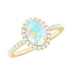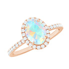 Certified Real 6X8mm Ethiopian Opal Oval Engagement Ring with Diamond Halo