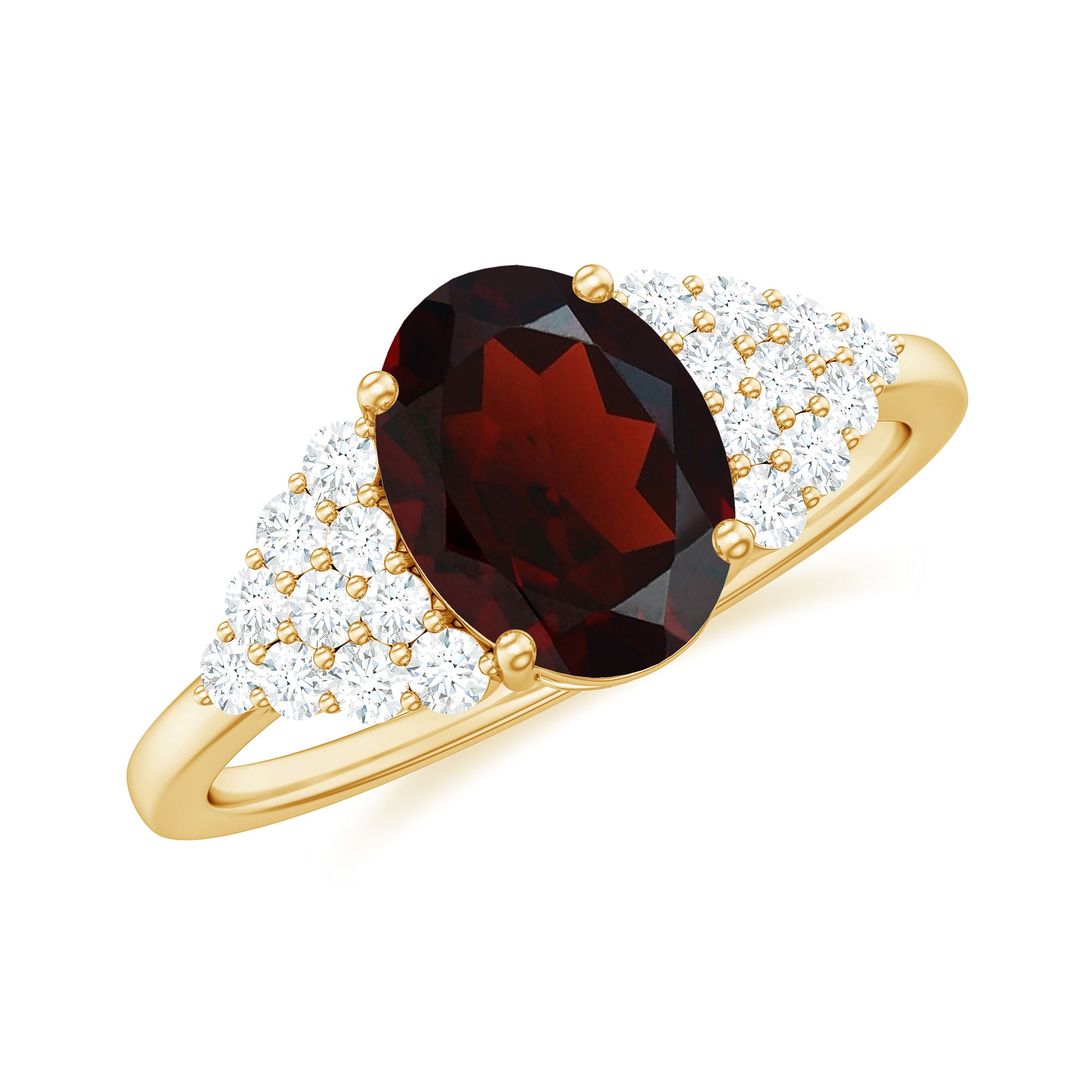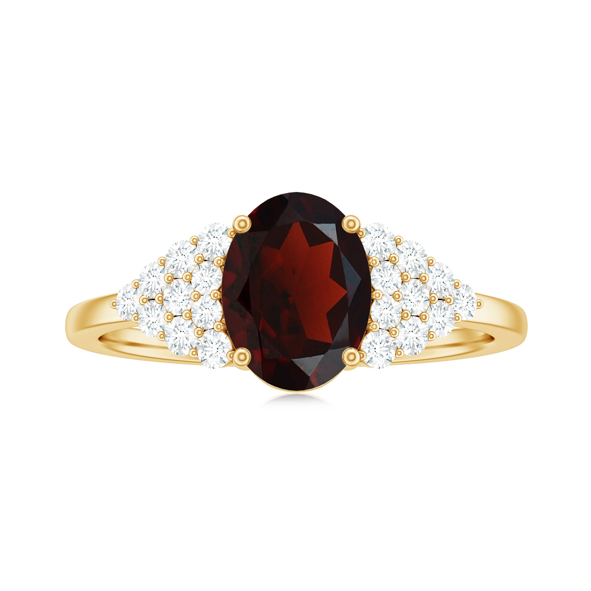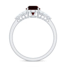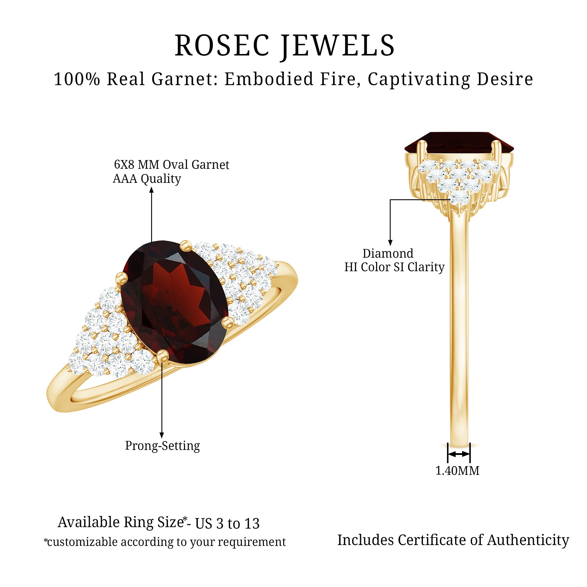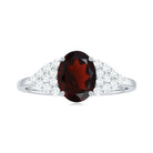 Certified Real 6X8mm Garnet Oval Engagement Ring with Diamond
