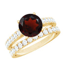 Commemorate your special day with this mesmerizing Wedding Bridal Ring Set, that captures the depth of your love in every shimmering detail. This 2 Piece Wedding Ring Set brings together passion, elegance and timeless devotion in a breathtaking duo. The Solitaire Engagement Ring features a rich 8 mm Round Shape Garnet set in Prong Setting, its deep red hue symbolizing warmth, loyalty and a love that grows stronger with time. Delicate Moissanite Side Stones add a touch of sparkle, creating a beautiful contrast that enhances the natural glow of AAA Quality Garnet. Paired with it is a Moissanite Wedding Band, designed to shine endlessly, just like the promise you share. This Garnet Wedding Ring Set creates a harmonious blend of color and brilliance, perfect for marking a journey built on trust, joy and forever. Presented in a signature jewelry box, the unboxing becomes a heartfelt moment that reflects the significance of your celebration. With various ring sizes available, finding the perfect fit is simple and thoughtful. Let this Garnet Engagement Ring and Wedding Band become a symbol of your story, filled with love that will always remain beautifully yours.
