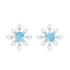 Certified Real Aquamarine Snowflake Earrings with Diamond