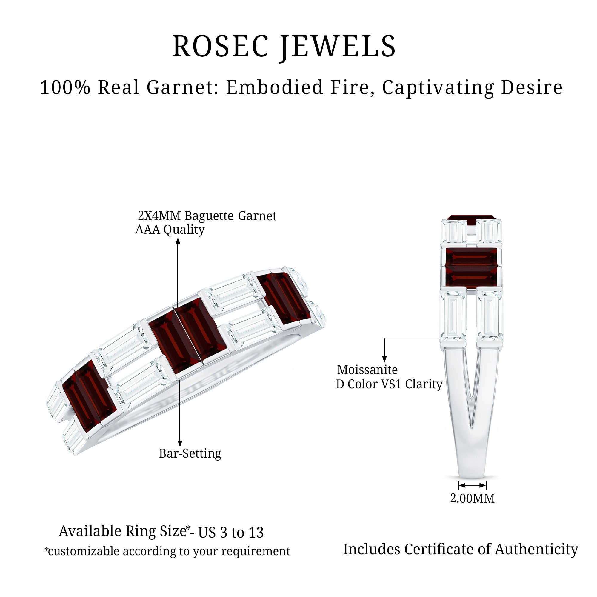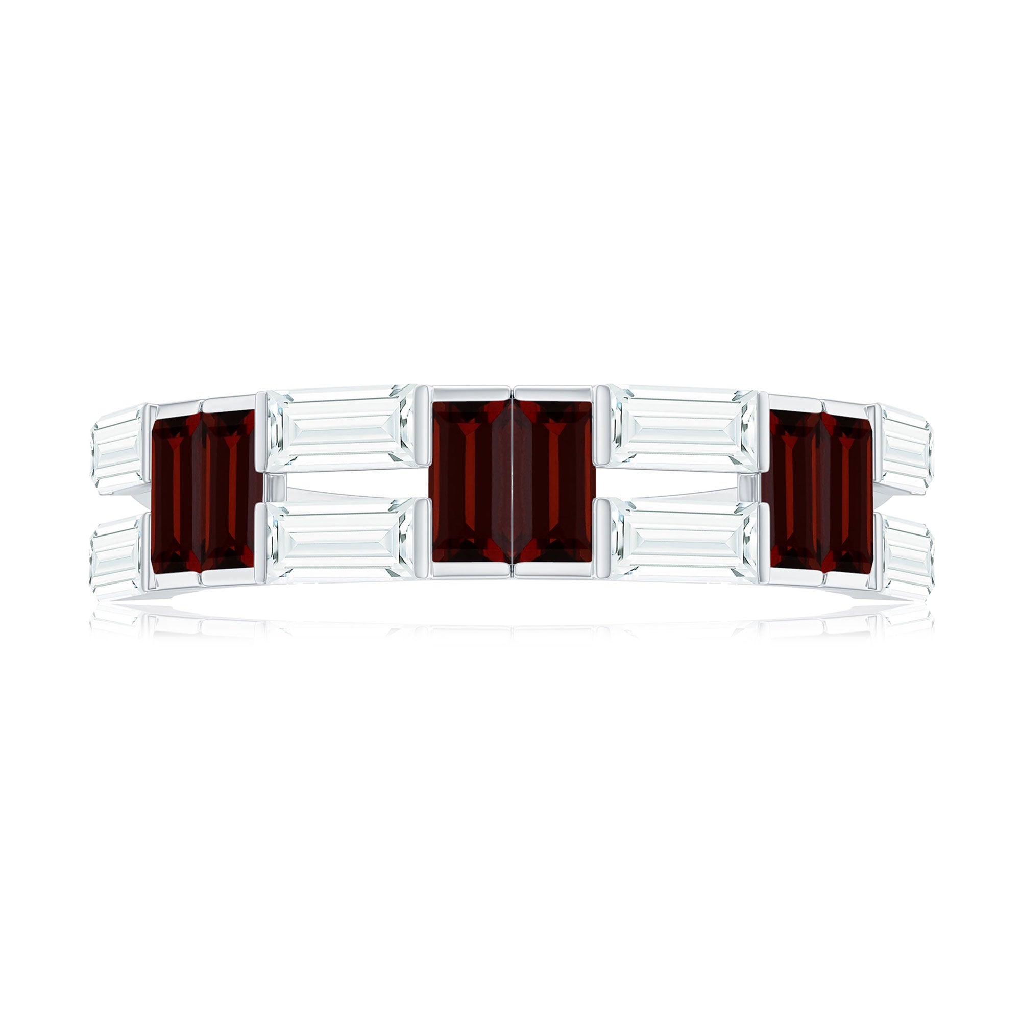 Certified Real Baguette Garnet Half Eternity Wedding Band