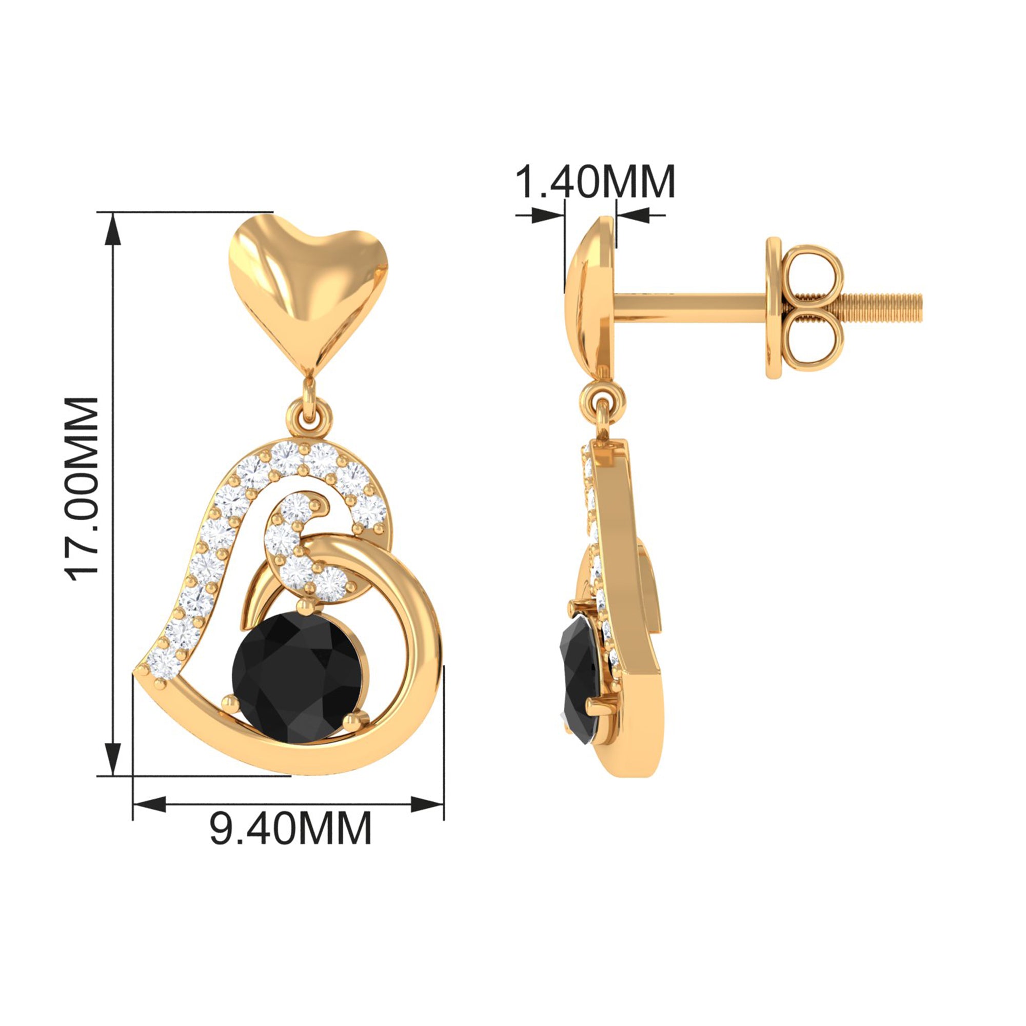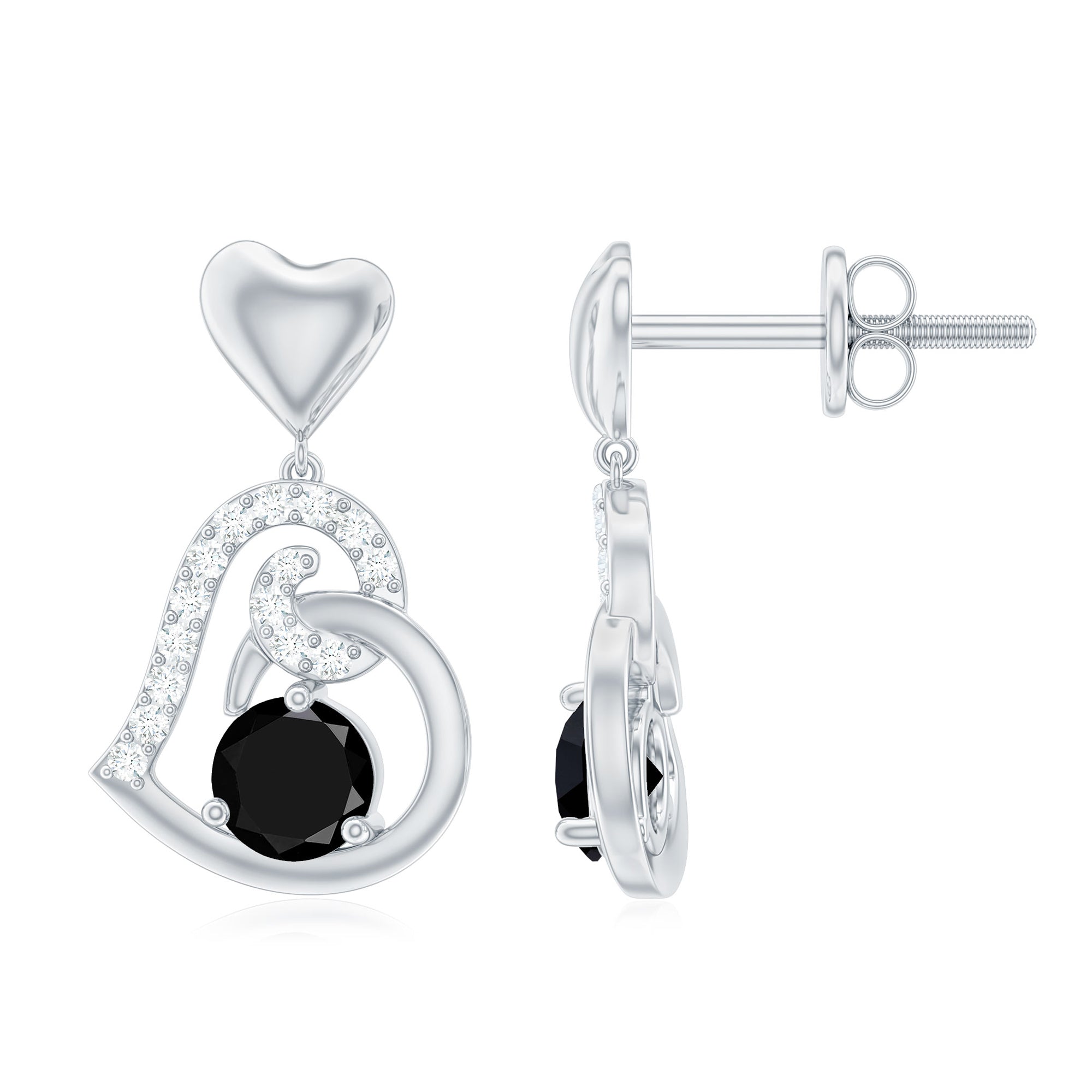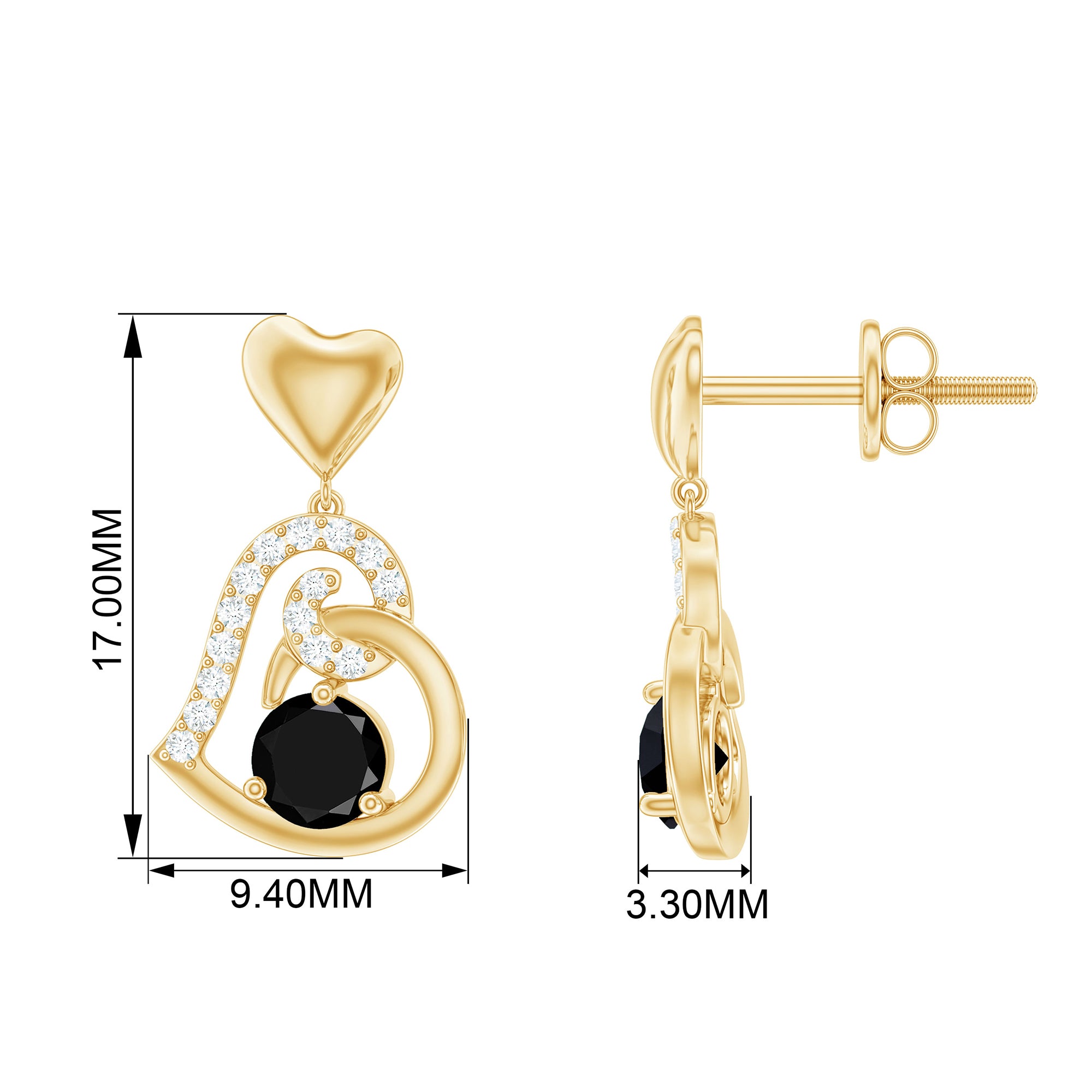 Express your love to her by presenting these Heart Drop Earrings, a dazzling symbol of affection and elegance. Featuring a striking contrast of Black and White Diamond stones, these Fine Earrings combine the depth of dark, mysterious Black Diamond with the bright sparkle of White Diamond. The AAA Quality Black Diamond is set in Prong Setting within an open Heart frame, accentuated by delicate White HI-SI Diamond stones, creating a design that is both bold and graceful. Dangling from a Heart motif, these Black Diamond Drop Earrings sway gently, catching the light with every movement and adding a touch of romance to any look. The secure Screw Back Closure ensures they stay in place, providing comfort and peace of mind. Perfect for both special occasions and everyday elegance, these Black and White Diamond Earrings are a timeless piece that will make her heart skip a beat. These Black Diamond Earrings are a perfect gift for anniversaries, birthdays or any special moments. A stunning reminder of your love that she will cherish forever.