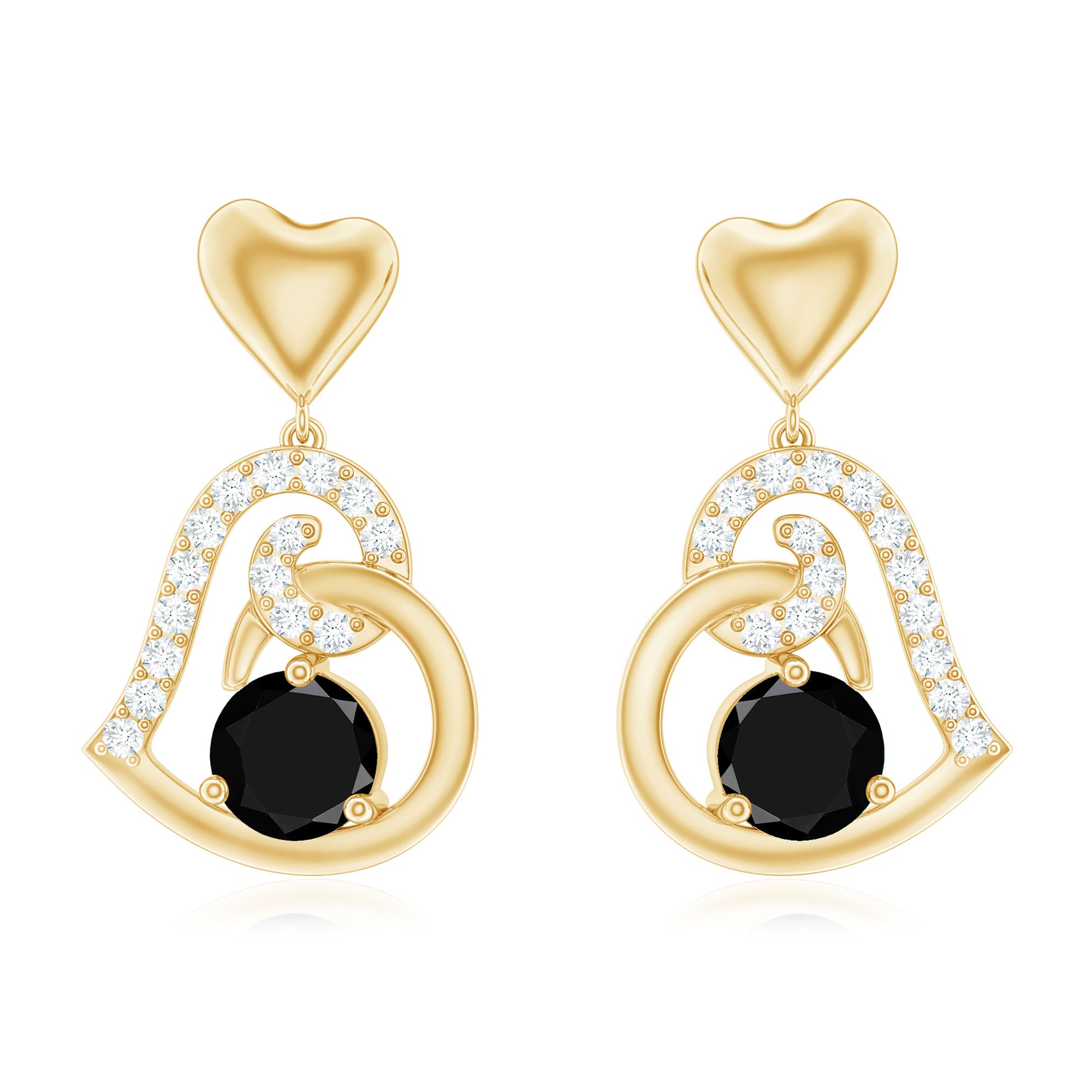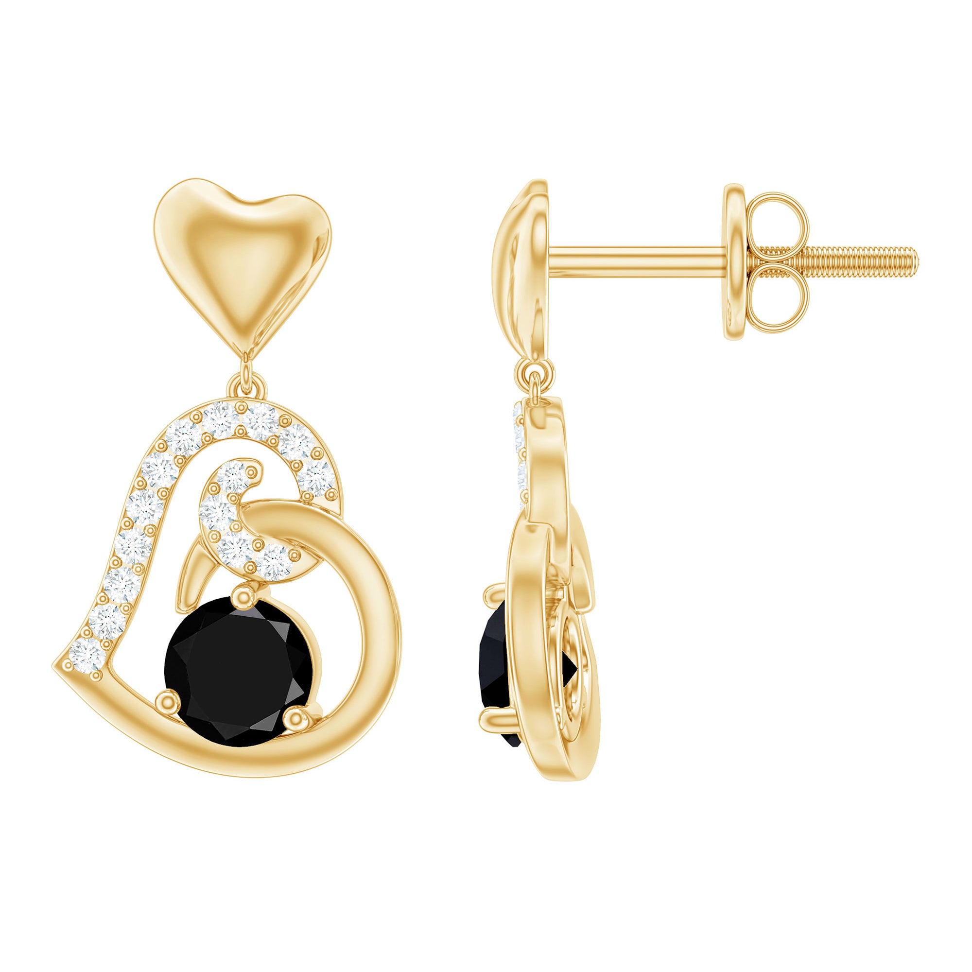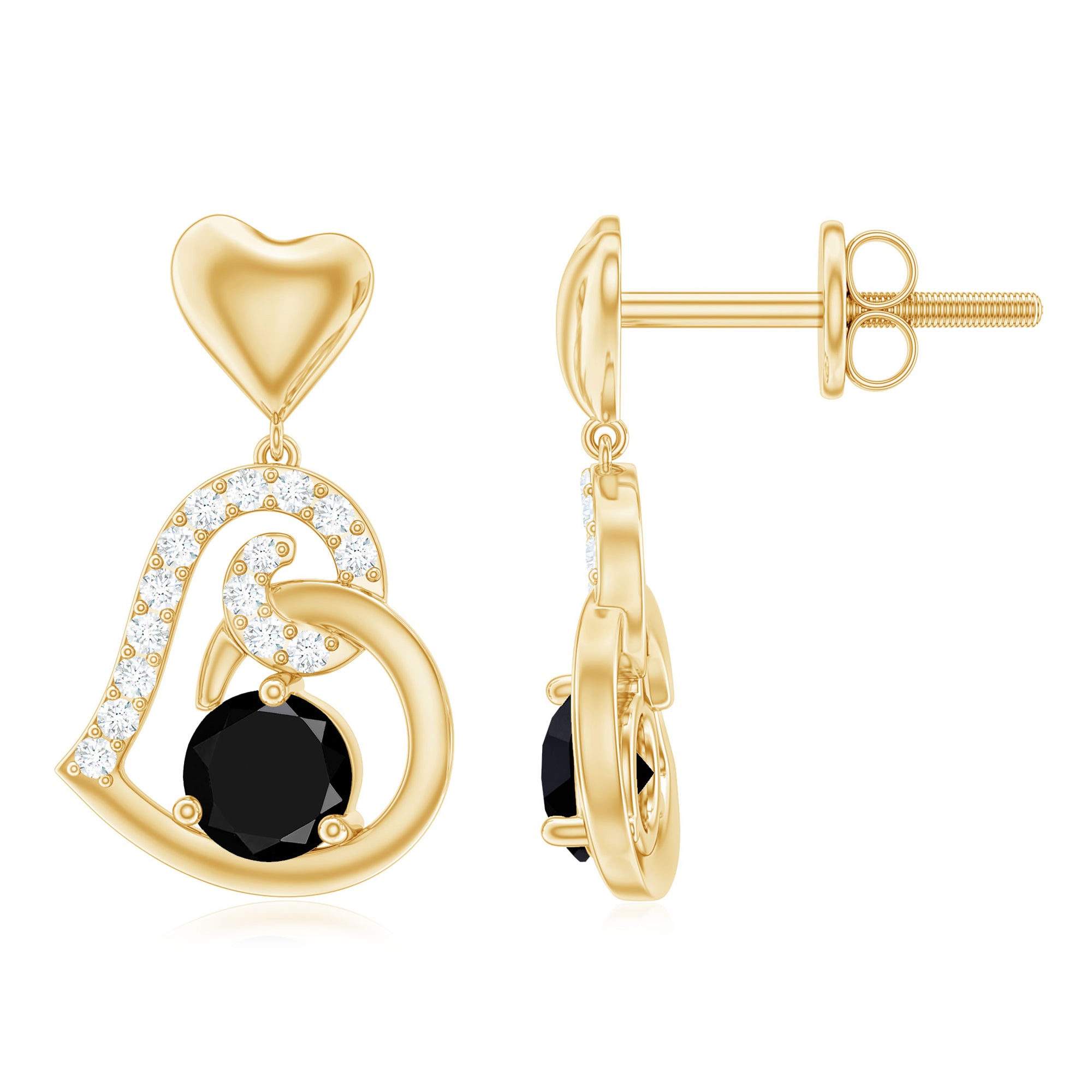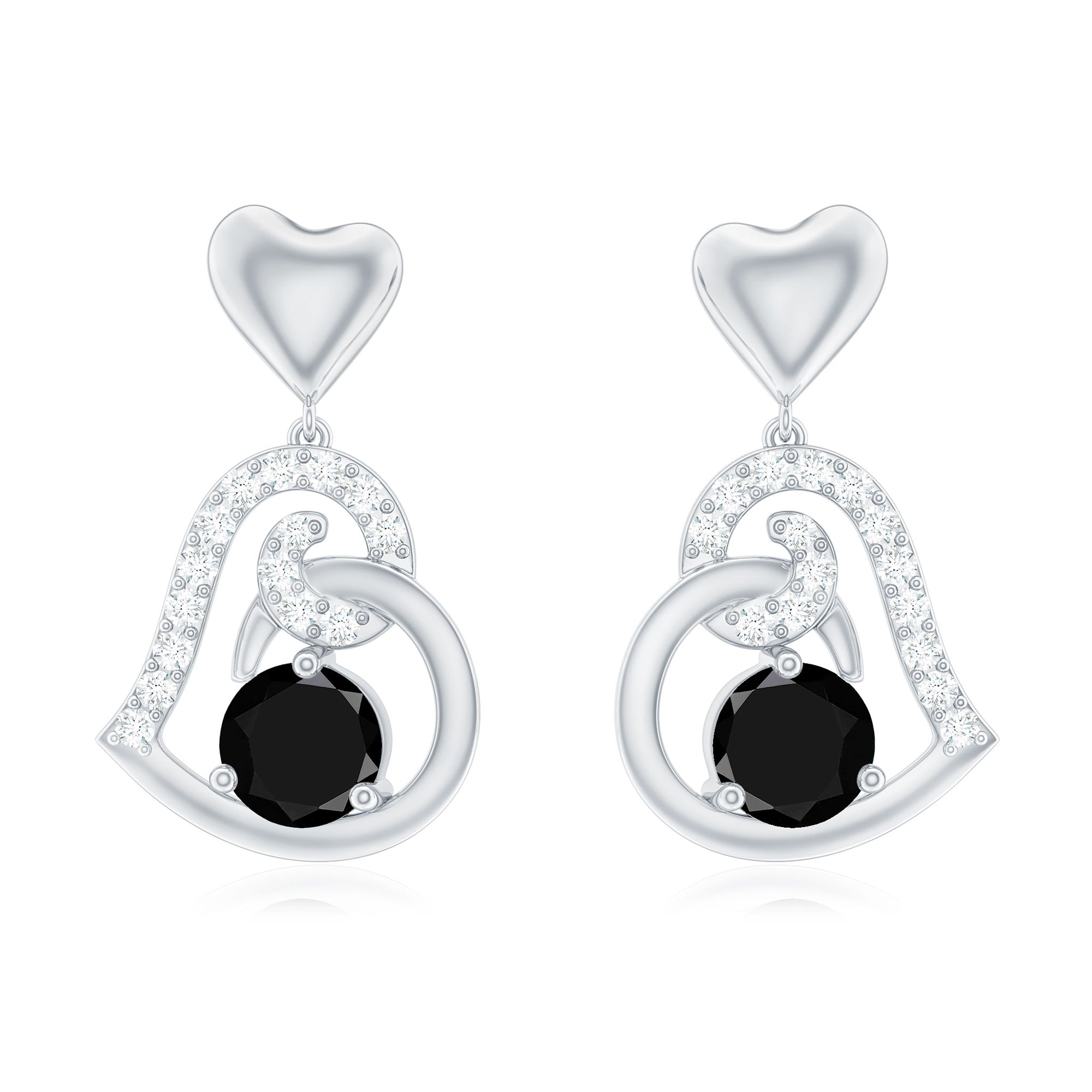 Express your love to her by presenting these Heart Drop Earrings, a dazzling symbol of affection and elegance. Featuring a striking contrast of Black and White Diamond stones, these Fine Earrings combine the depth of dark, mysterious Black Diamond with the bright sparkle of White Diamond. The AAA Quality Black Diamond is set in Prong Setting within an open Heart frame, accentuated by delicate White HI-SI Diamond stones, creating a design that is both bold and graceful. Dangling from a Heart motif, these Black Diamond Drop Earrings sway gently, catching the light with every movement and adding a touch of romance to any look. The secure Screw Back Closure ensures they stay in place, providing comfort and peace of mind. Perfect for both special occasions and everyday elegance, these Black and White Diamond Earrings are a timeless piece that will make her heart skip a beat. These Black Diamond Earrings are a perfect gift for anniversaries, birthdays or any special moments. A stunning reminder of your love that she will cherish forever.