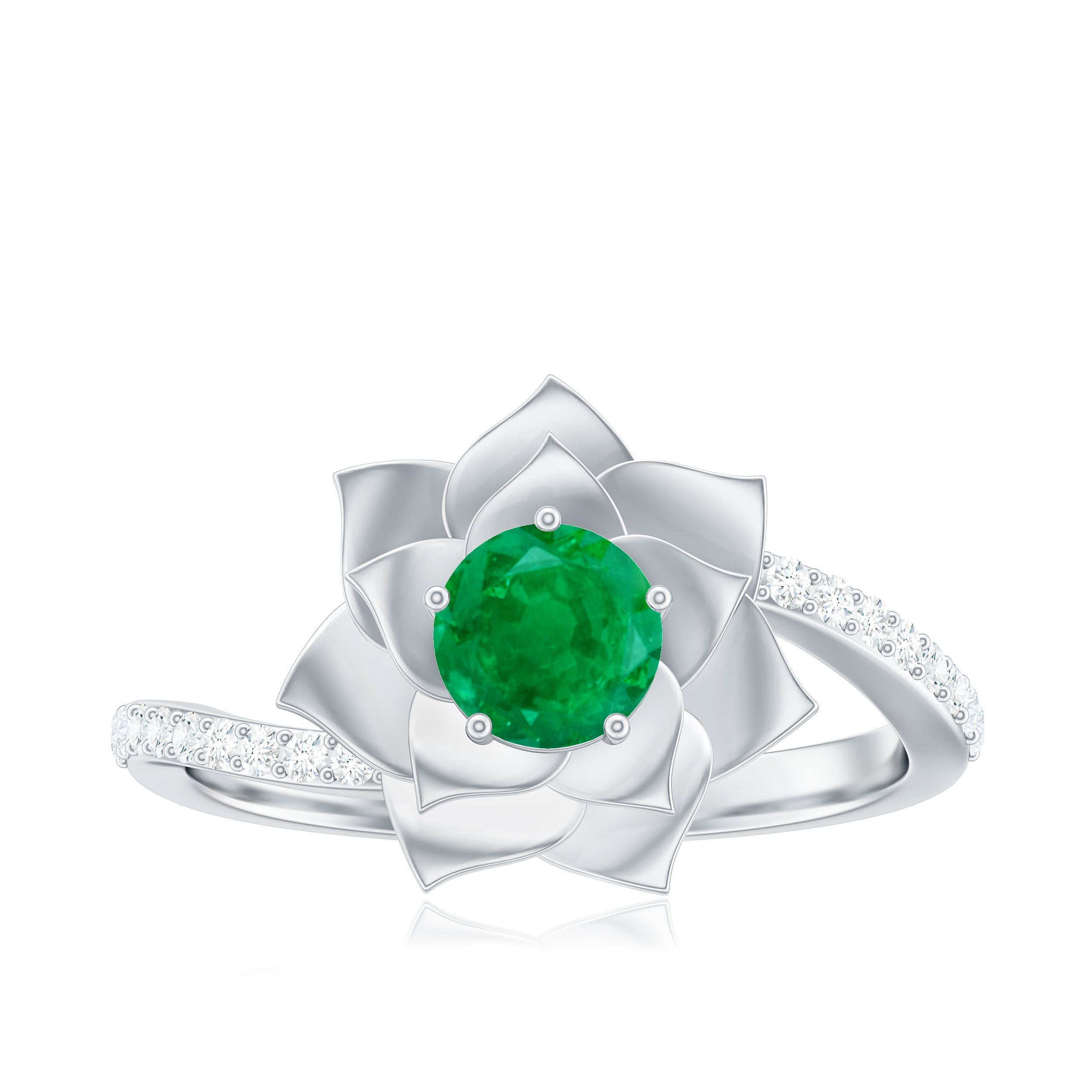 Certified Real Emerald Flower Engagement Ring with Diamond Bypass Shank