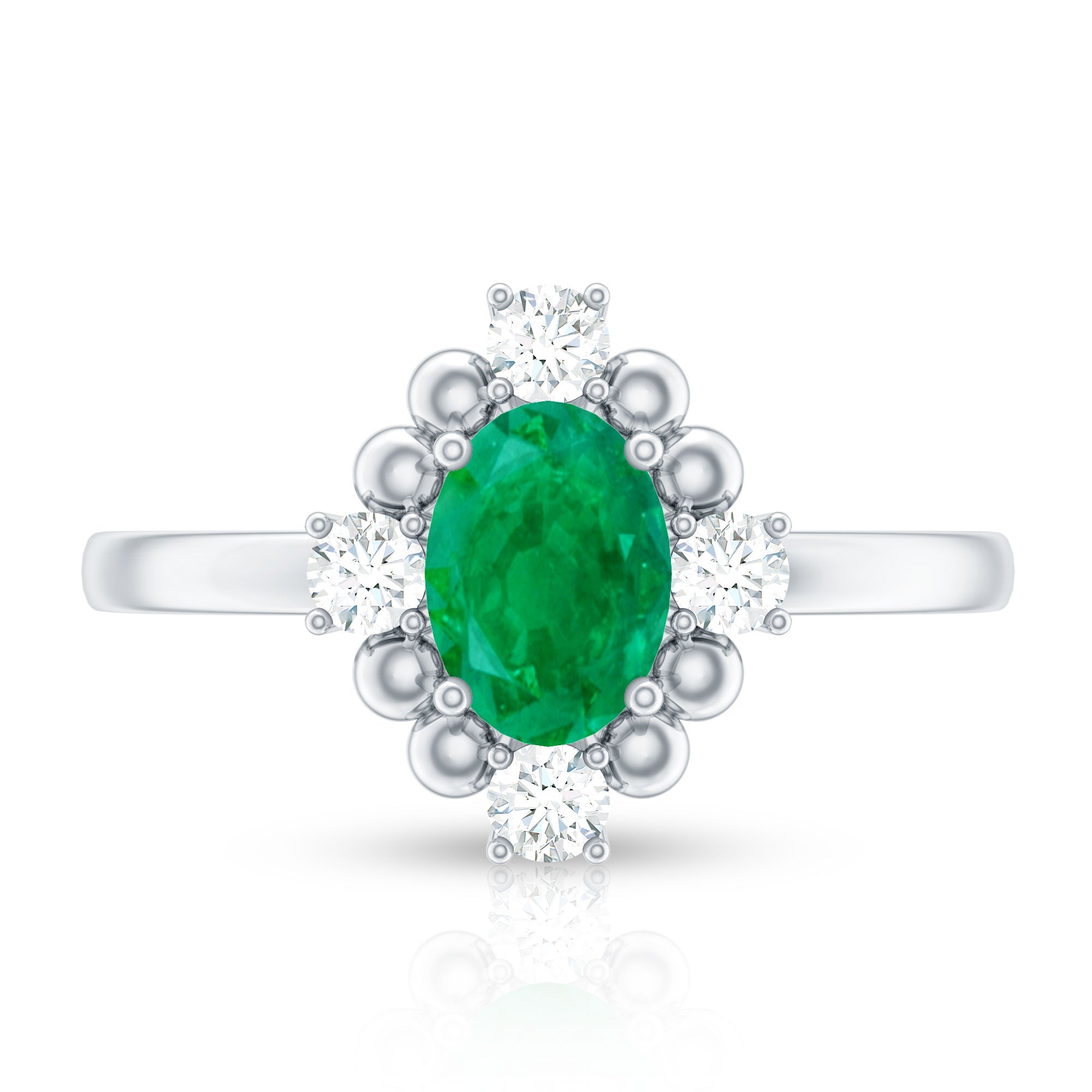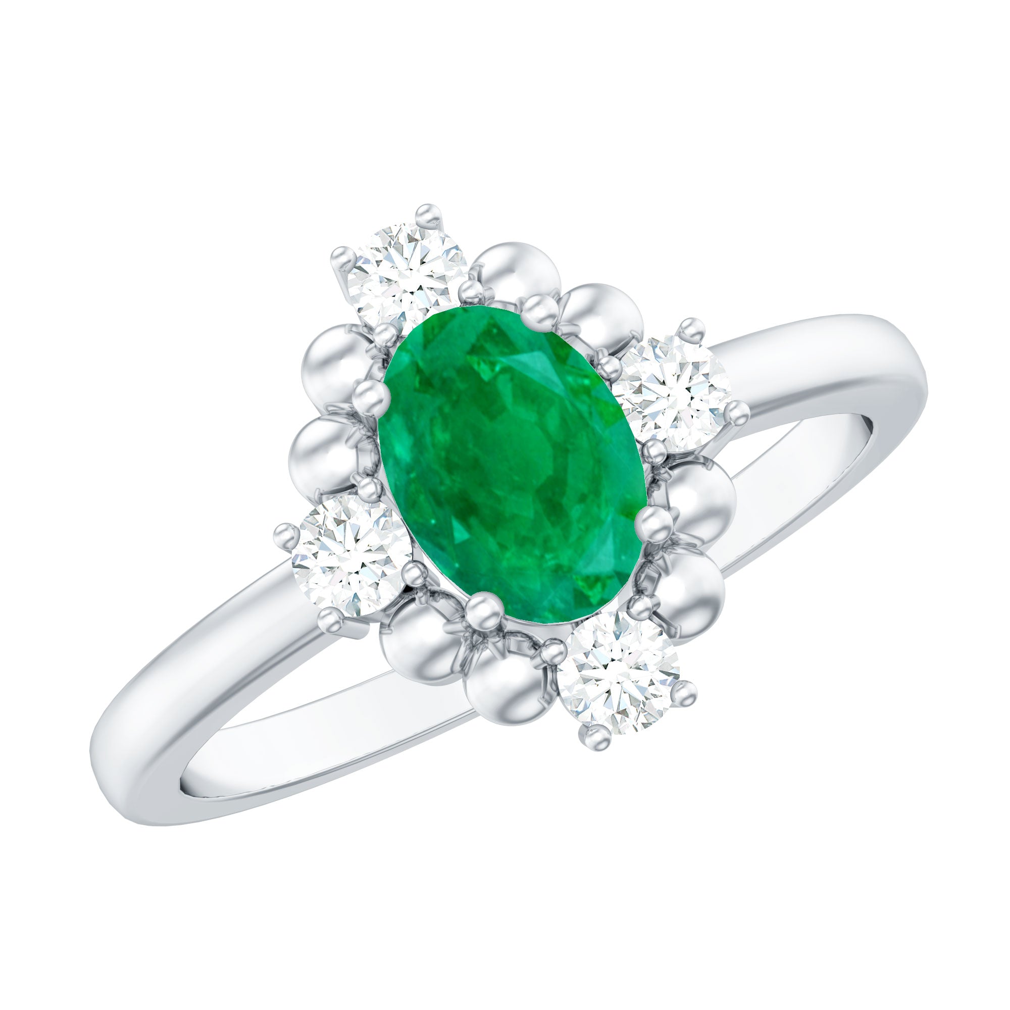 This mesmerizing Oval Engagement Ring is a masterpiece crafted to celebrate the magic of forever. At the center, a 5X7 mm Oval Shape Emerald glows with deep green brilliance, symbolizing faith, renewal and the rare beauty of true love. Surrounding this precious gem, a delicate halo of sparkling Diamond stones and Beaded detailing adds a touch of vintage charm and artistic grace. The result is a design that feels both timeless and deeply personal, a reflection of a love that is as unique as the two of you. This Emerald Diamond Engagement Ring is thoughtfully crafted to capture light, emotion and devotion in perfect harmony. Presented in a signature jewelry box and available in a range of sizes, this Halo Engagement Ring with Emerald is a symbol of commitment and a promise wrapped in elegance. Whether it is for a heartfelt proposal or a treasured gift, this Vintage Looking Engagement Ring transforms every moment into a memory of everlasting love, destined to be cherished for generations to come.