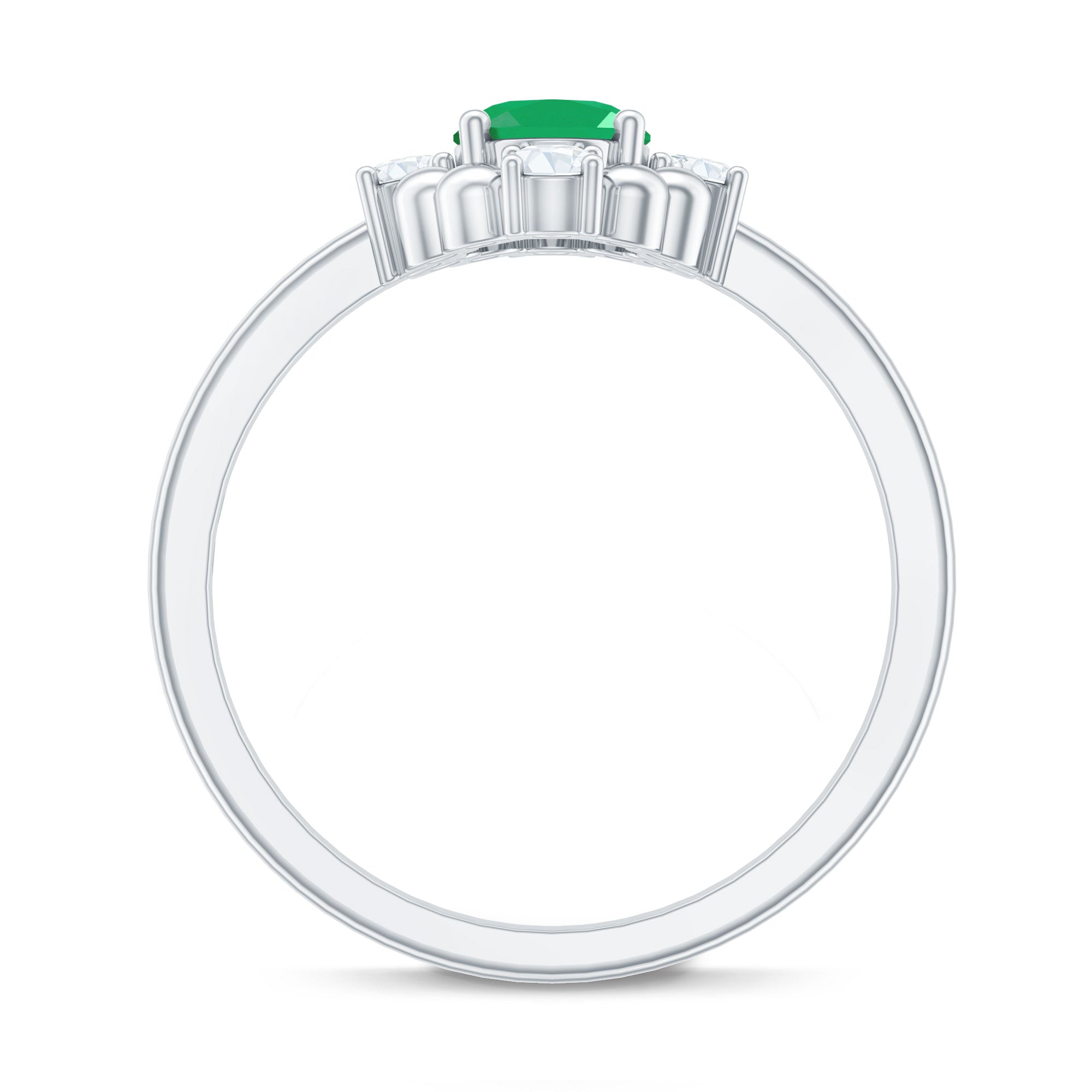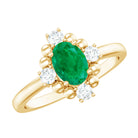 Certified Real Emerald Oval Engagement Ring with Diamond