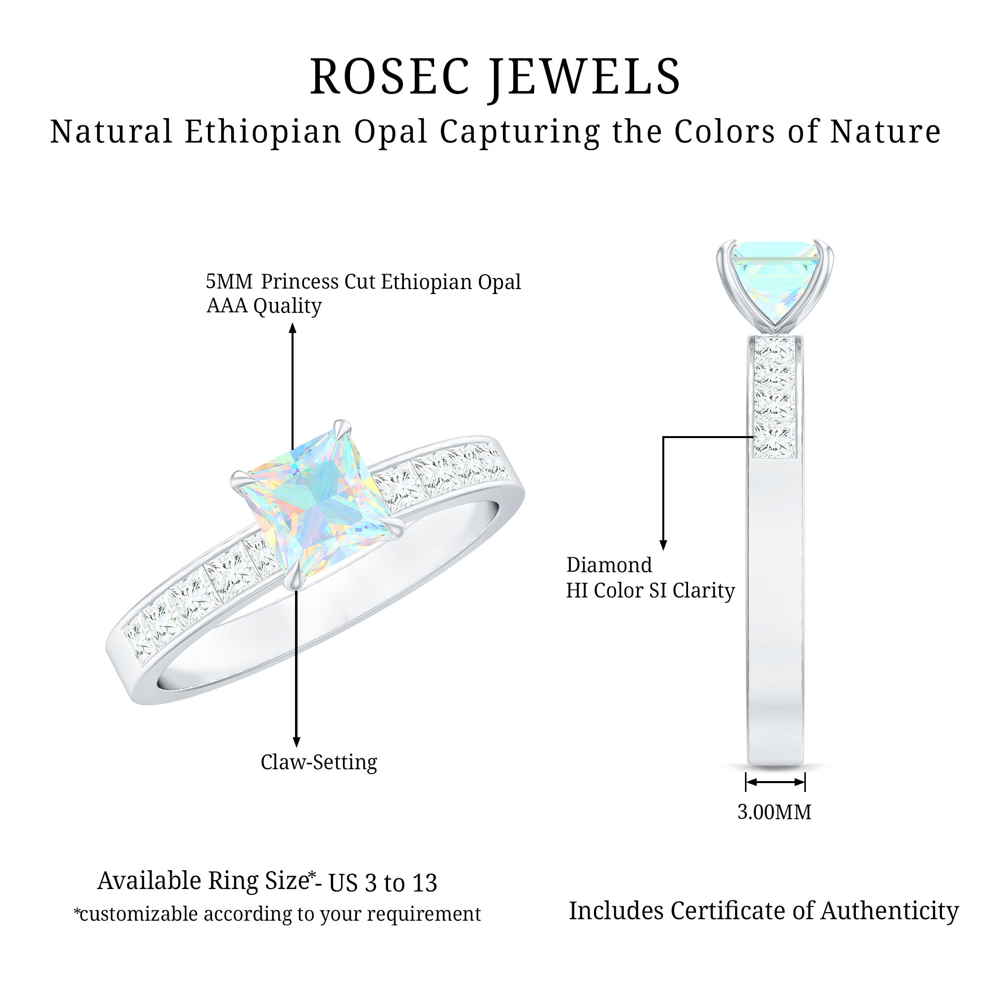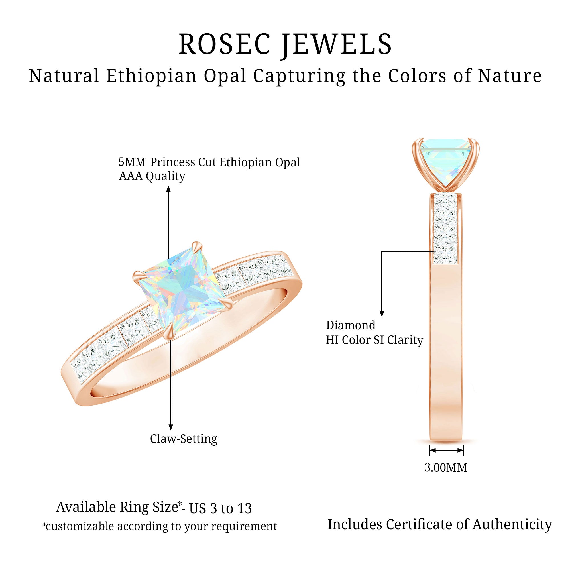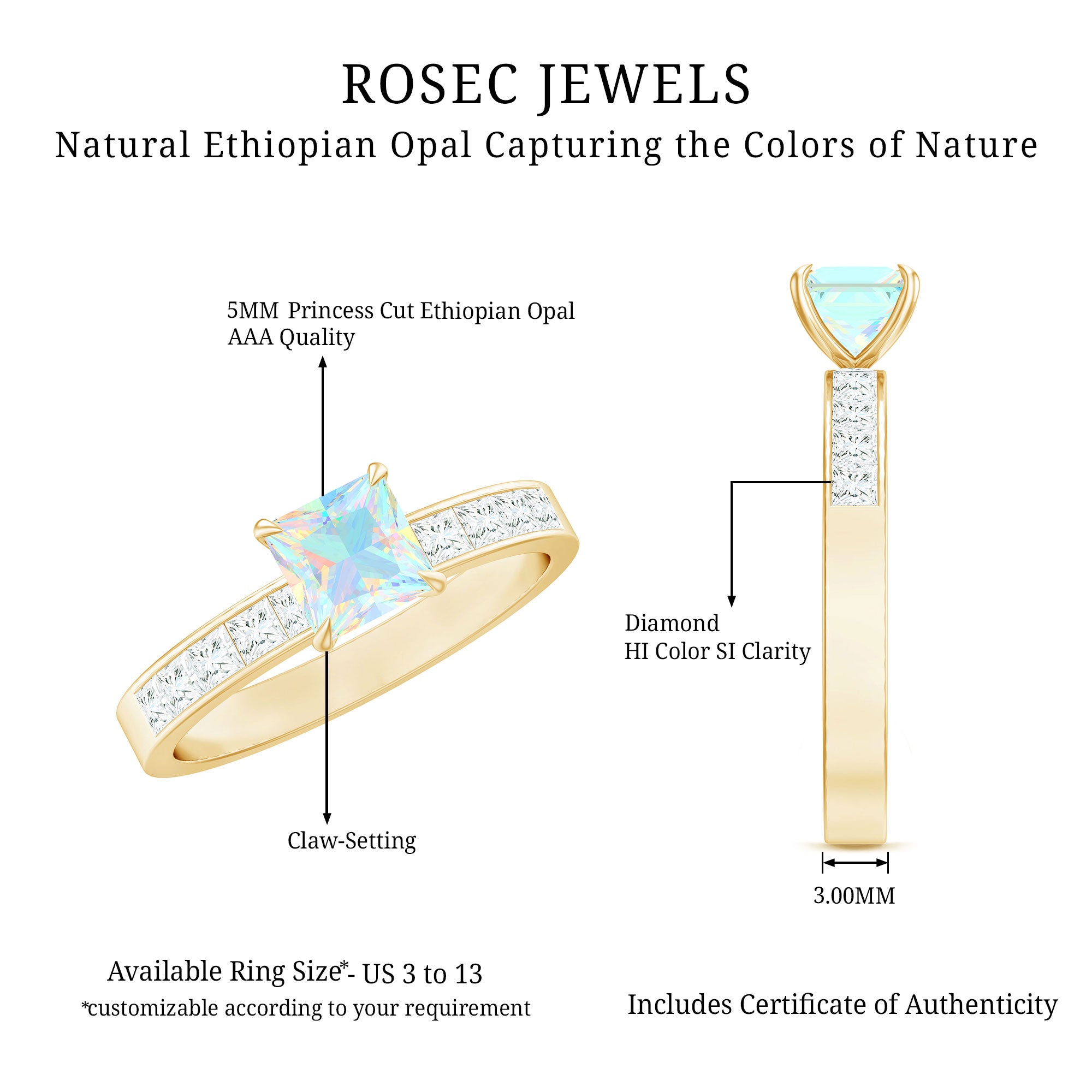 Certified Real Ethiopian Opal Princess Cut Engagement Ring with Diamond