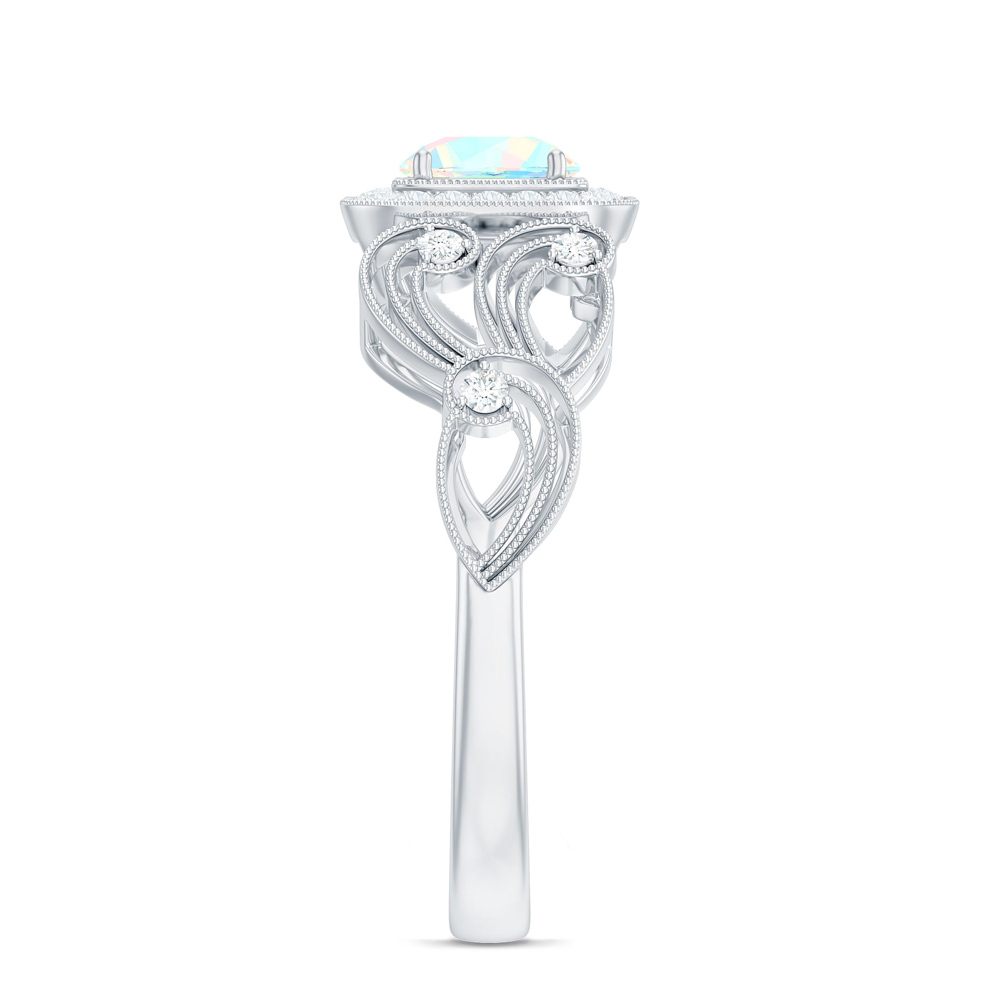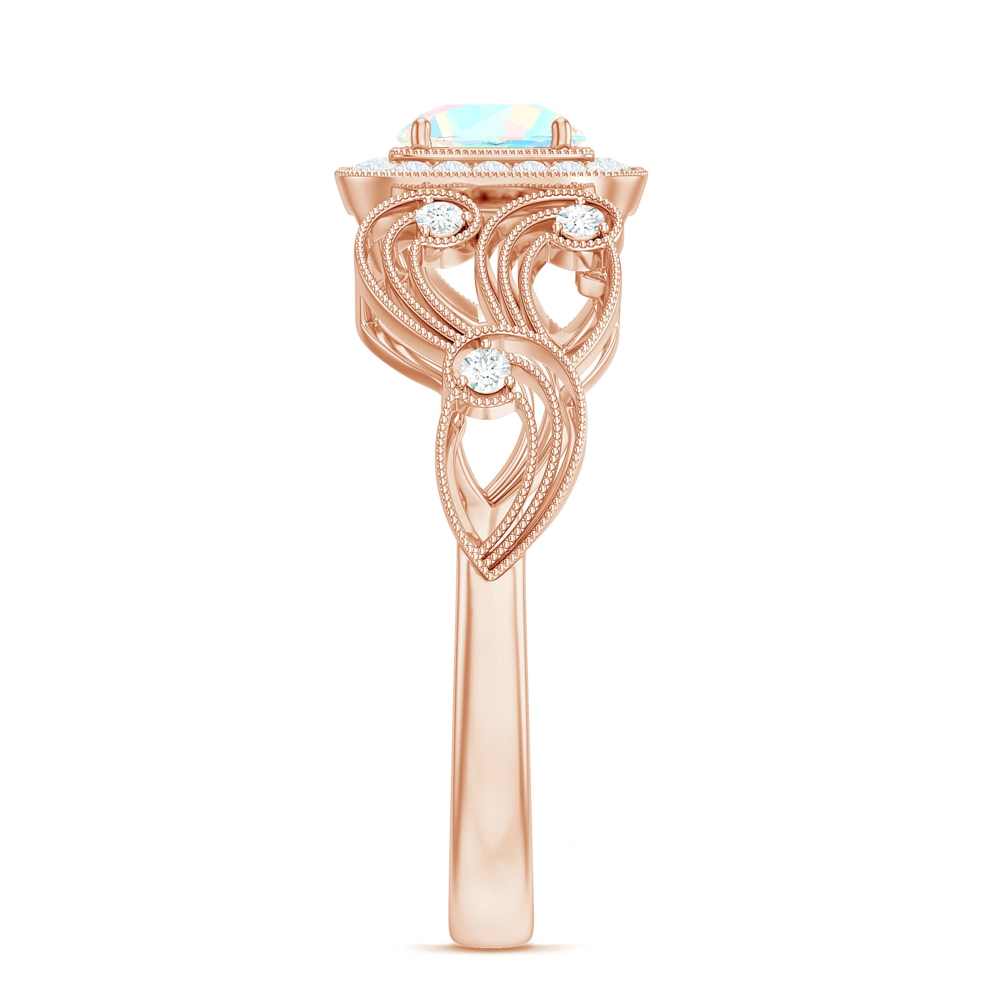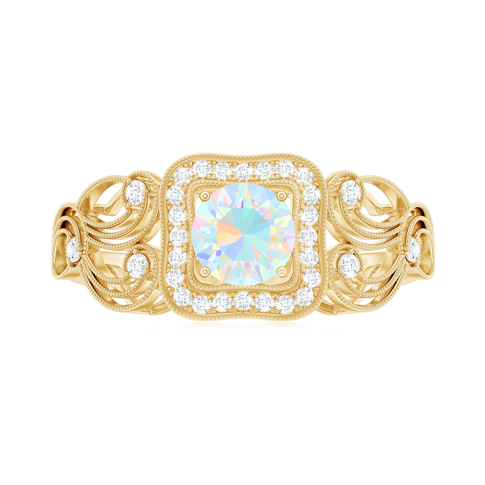 Move back in time with a modern twist in this Vintage Inspired Engagement Ring, where vintage elegance meets vibrant brilliance. Designed to capture hearts, this Fine Engagement Ring features a mesmerizing 5 mm Round Shape Ethiopian Opal at the center in Prong Setting that glows with a kaleidoscope of colors, surrounded by a Halo of sparkling Diamond stones that catch the light from every angle. The band is a true showstopper, featuring intricate Beaded Detailing and shimmering Diamond stones that weave together classic charm and contemporary flair. This Opal Diamond Engagement Ring captures the spirit of retro glamour while celebrating the unique beauty of the Opal, making it the perfect choice for someone who loves to stand out with a piece that is both nostalgic and fresh. Whether you are sealing a lifetime promise or adding a statement piece to your collection, this Ethiopian Opal Ring promises timeless allure wrapped in radiant sparkle. Available in various ring sizes and presented inside an elegant jewelry box, this Opal Halo Ring is ready to become the shining symbol of your love story. This Vintage Opal Engagement Ring is a dazzling tribute to the past, present and future, crafted to turn heads and capture hearts.