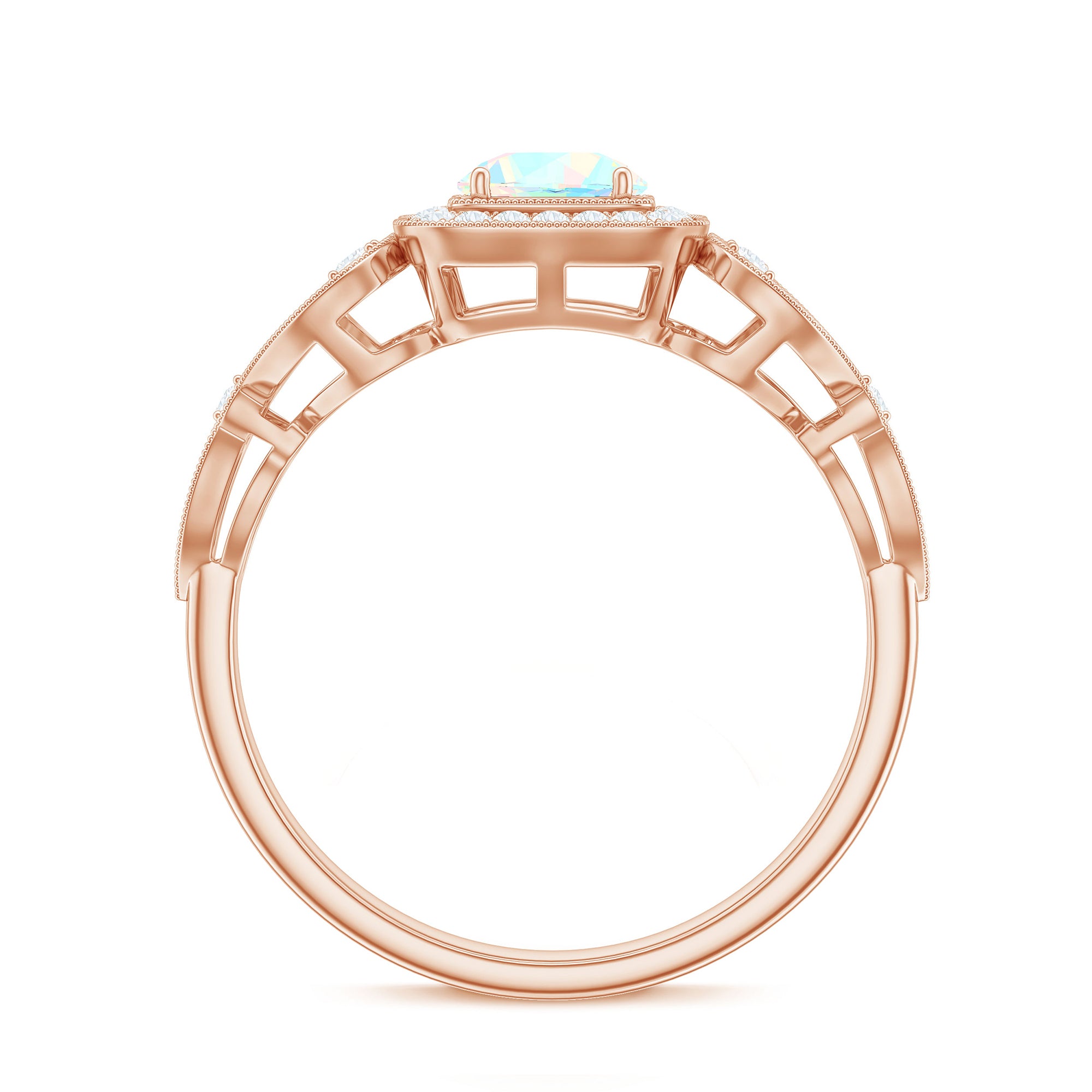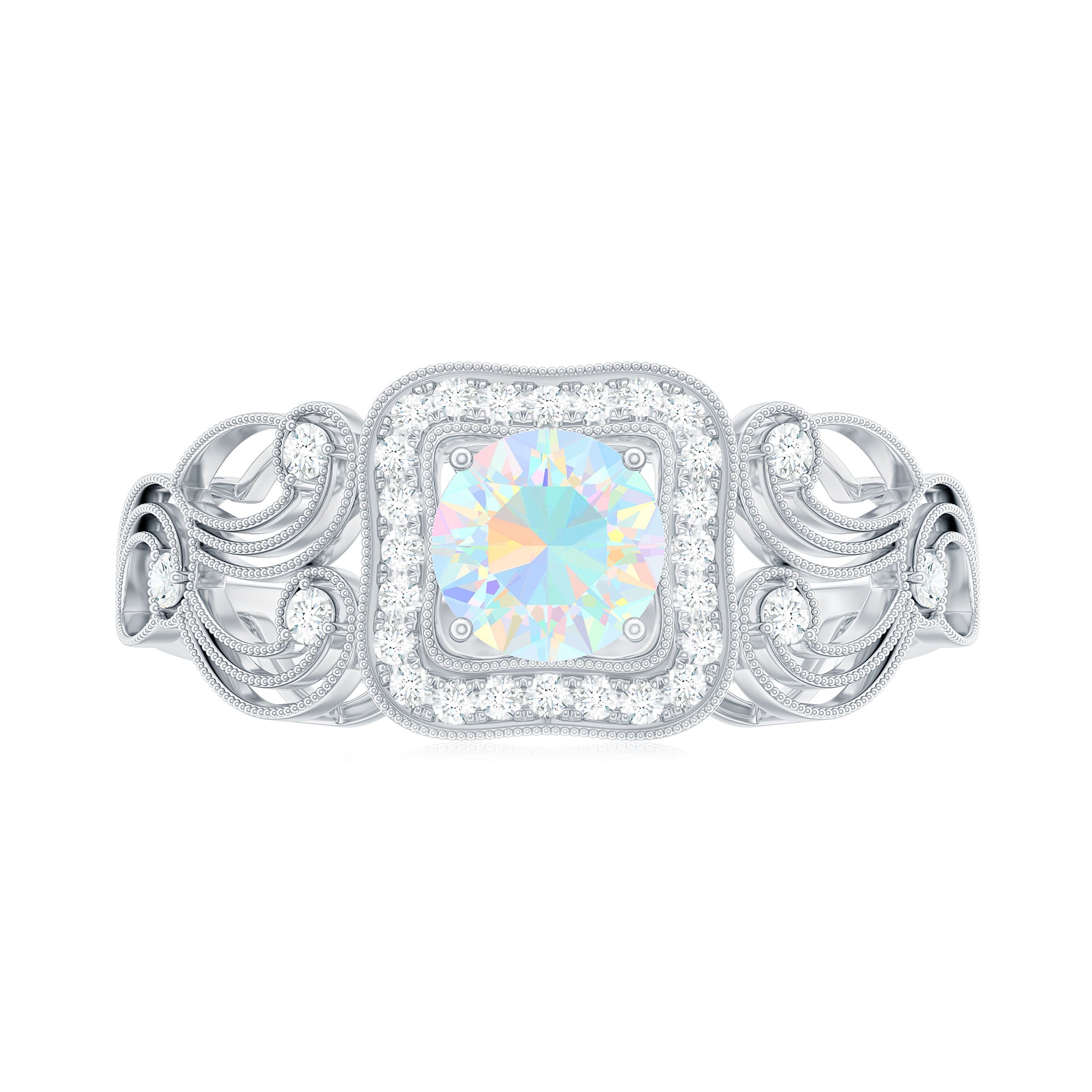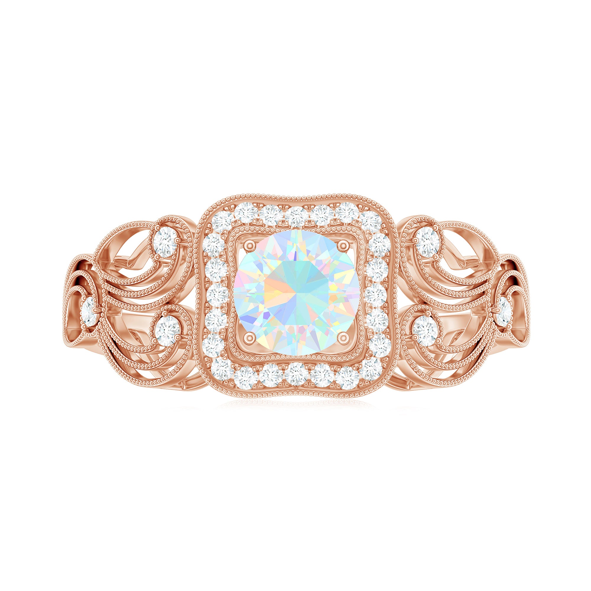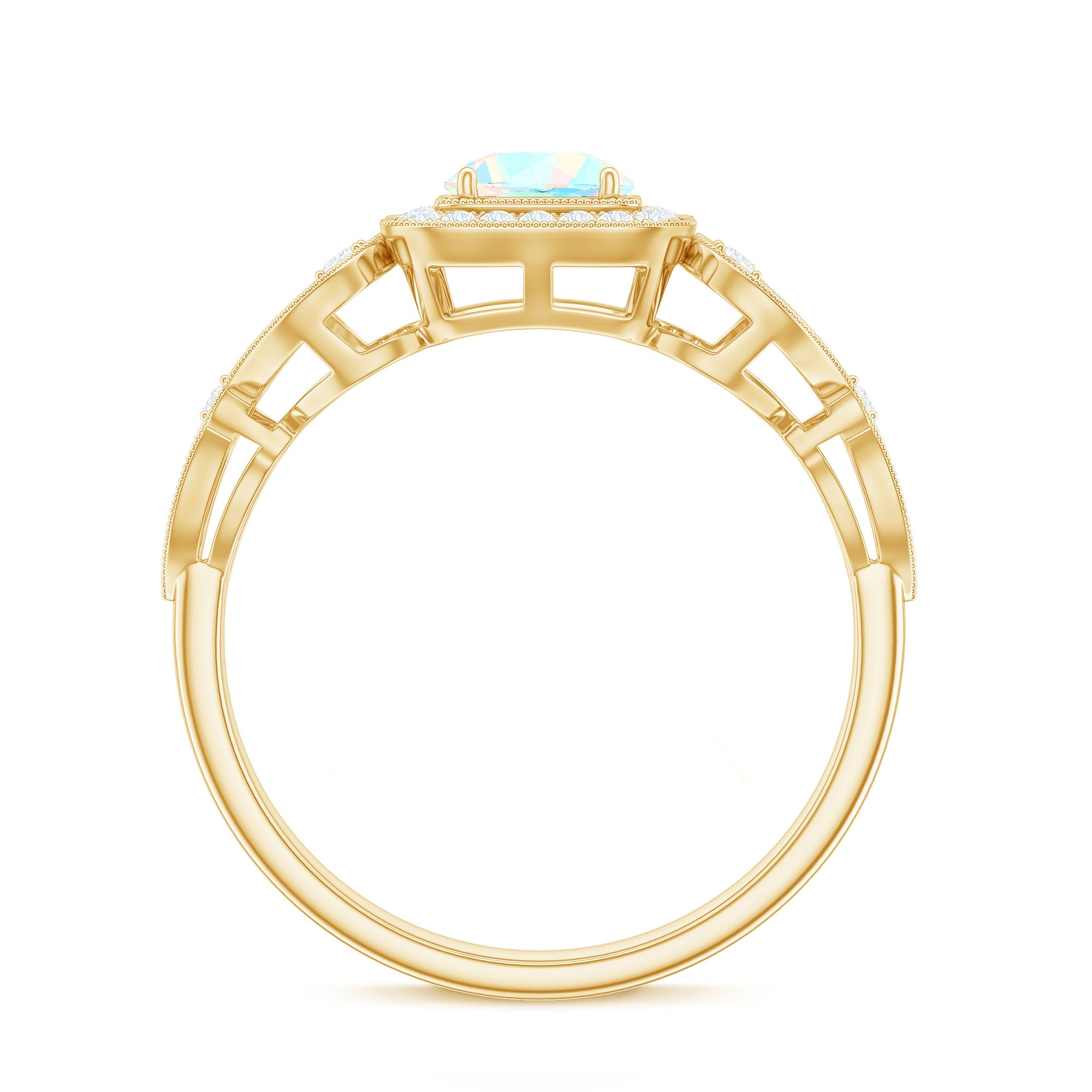 Move back in time with a modern twist in this Vintage Inspired Engagement Ring, where vintage elegance meets vibrant brilliance. Designed to capture hearts, this Fine Engagement Ring features a mesmerizing 5 mm Round Shape Ethiopian Opal at the center in Prong Setting that glows with a kaleidoscope of colors, surrounded by a Halo of sparkling Diamond stones that catch the light from every angle. The band is a true showstopper, featuring intricate Beaded Detailing and shimmering Diamond stones that weave together classic charm and contemporary flair. This Opal Diamond Engagement Ring captures the spirit of retro glamour while celebrating the unique beauty of the Opal, making it the perfect choice for someone who loves to stand out with a piece that is both nostalgic and fresh. Whether you are sealing a lifetime promise or adding a statement piece to your collection, this Ethiopian Opal Ring promises timeless allure wrapped in radiant sparkle. Available in various ring sizes and presented inside an elegant jewelry box, this Opal Halo Ring is ready to become the shining symbol of your love story. This Vintage Opal Engagement Ring is a dazzling tribute to the past, present and future, crafted to turn heads and capture hearts.