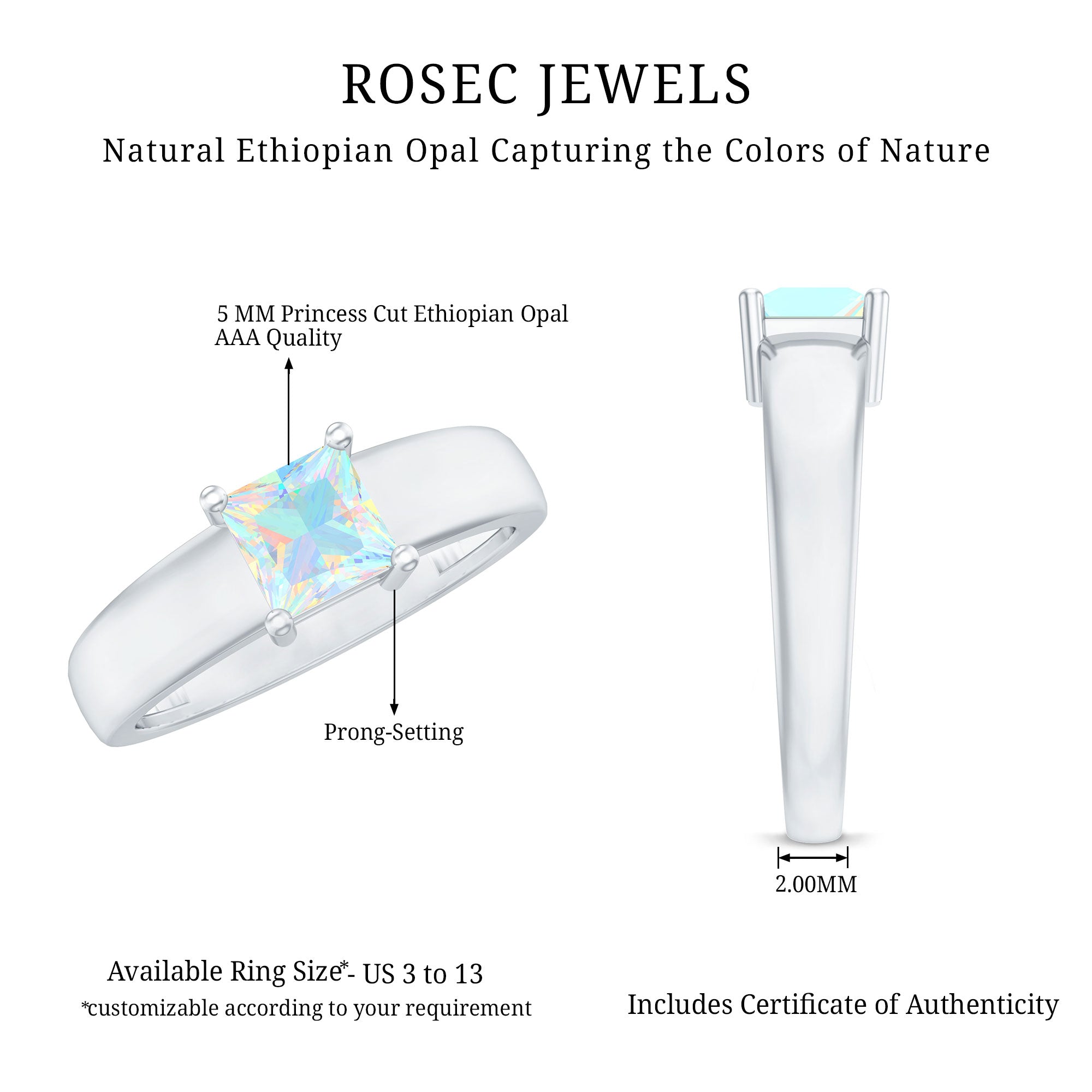 Certified Real Ethiopian Rainbow Opal Princess Cut Engagement Ring